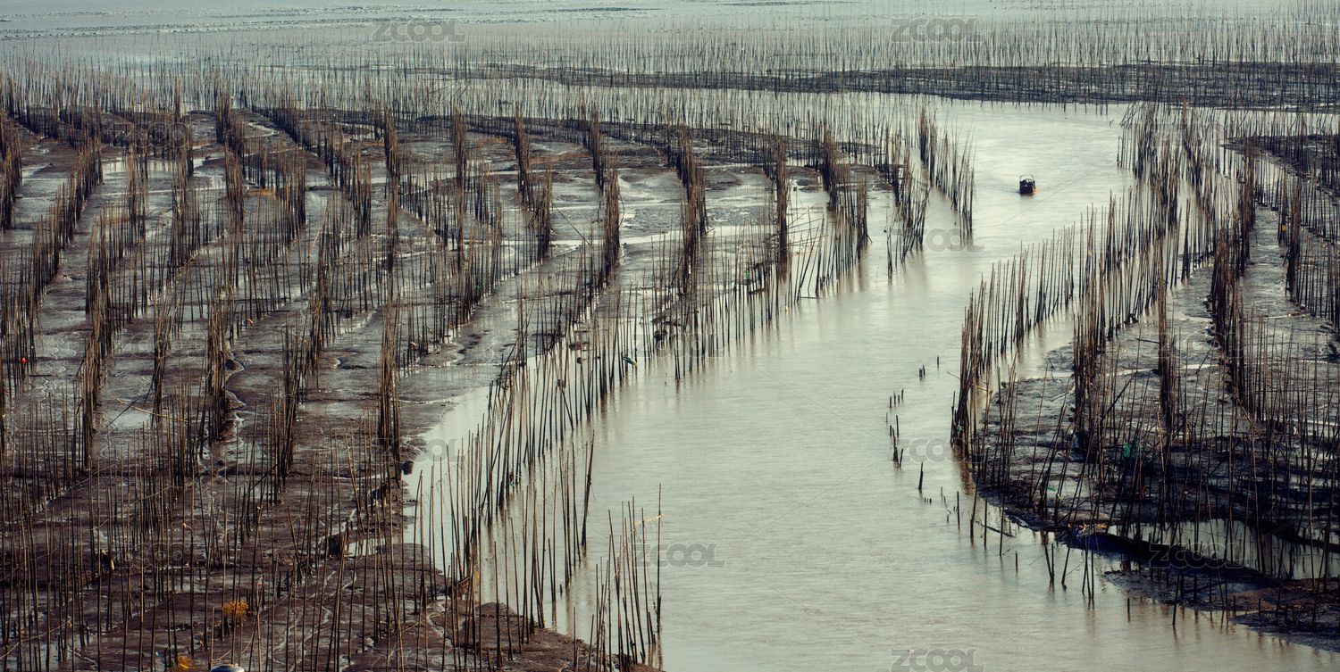 福建宁德市霞浦县北岐村滩涂海港的早晨