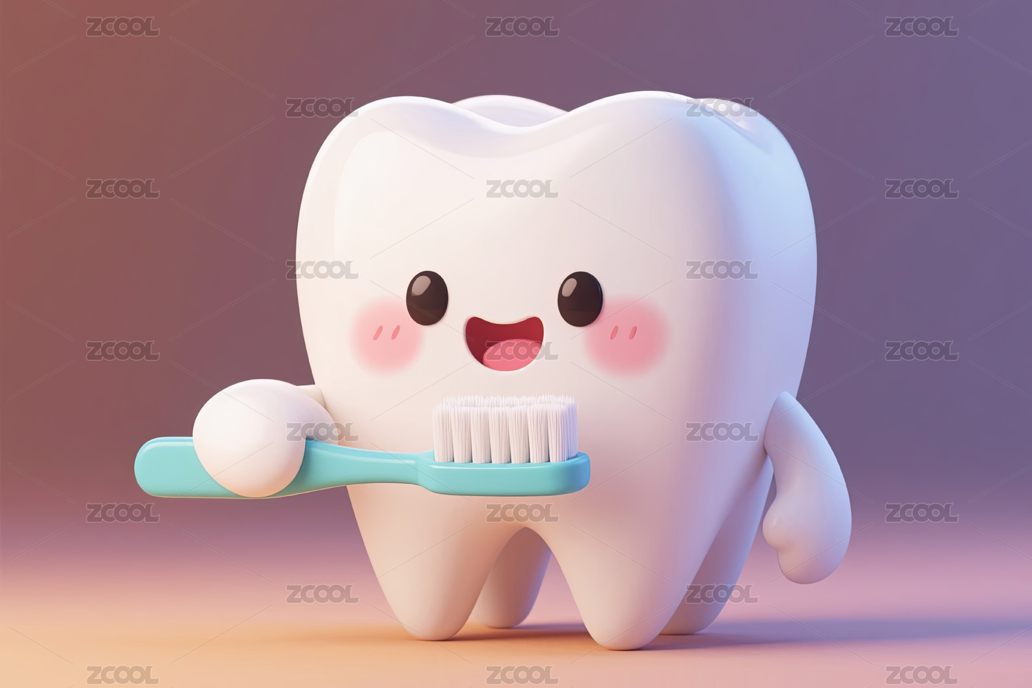一颗可爱的牙齿正在刷牙 爱牙日壁纸海报
