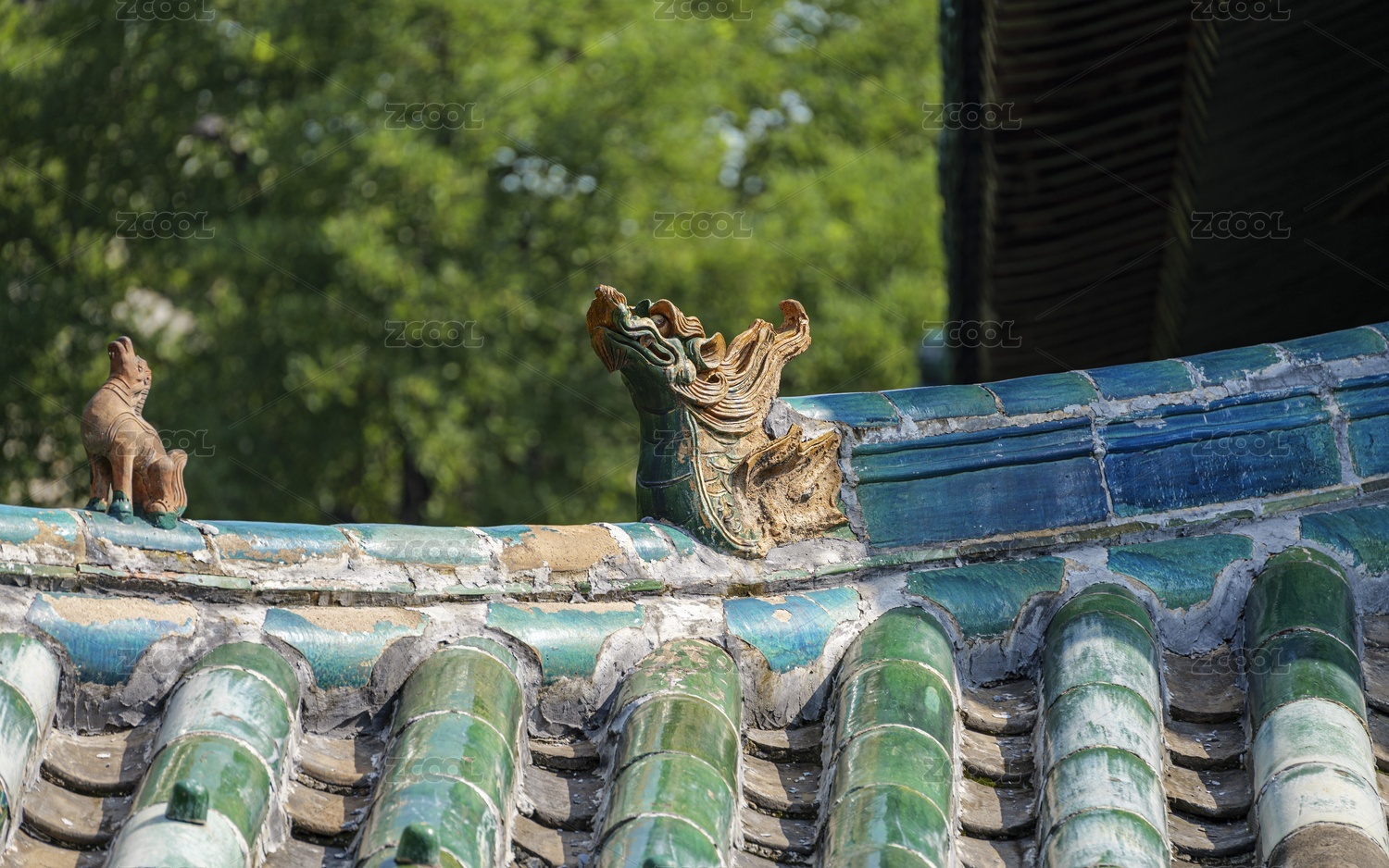 传统建筑上的可爱猫咪