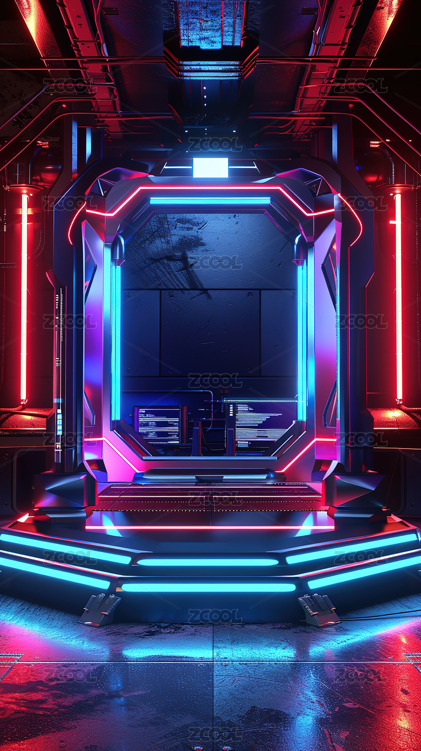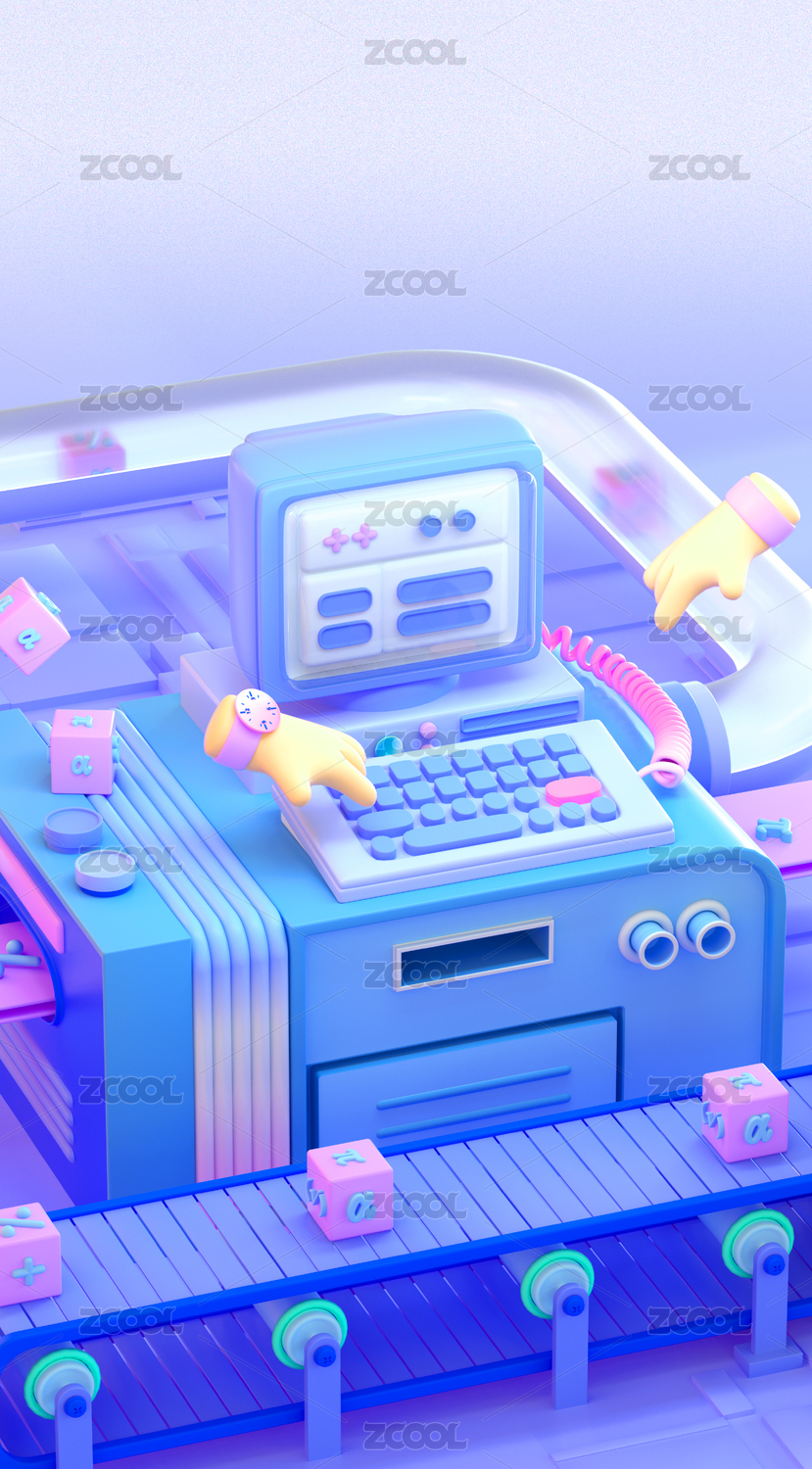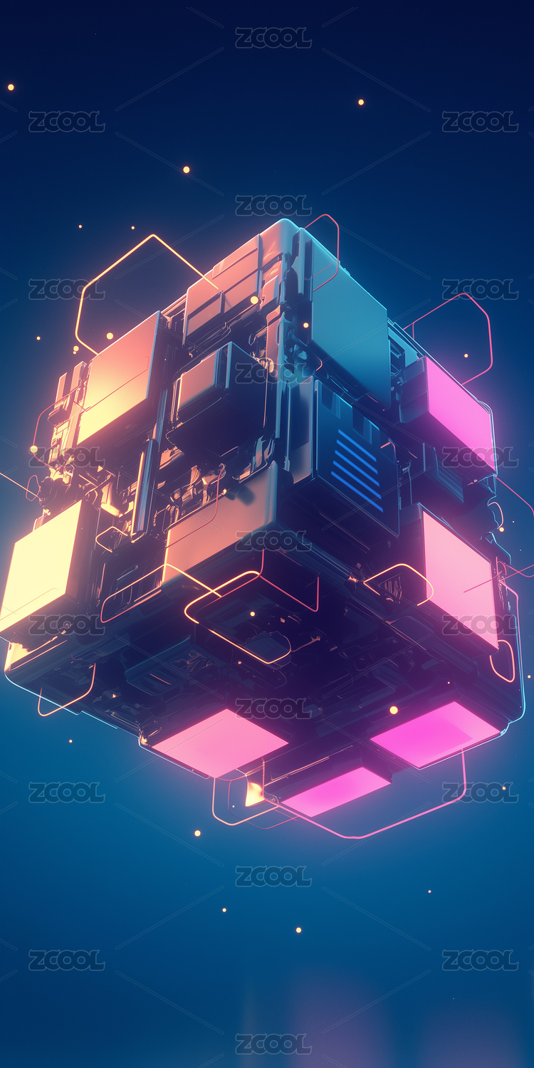 科幻彩色赛博荧光色魔方CPU存储3D插画