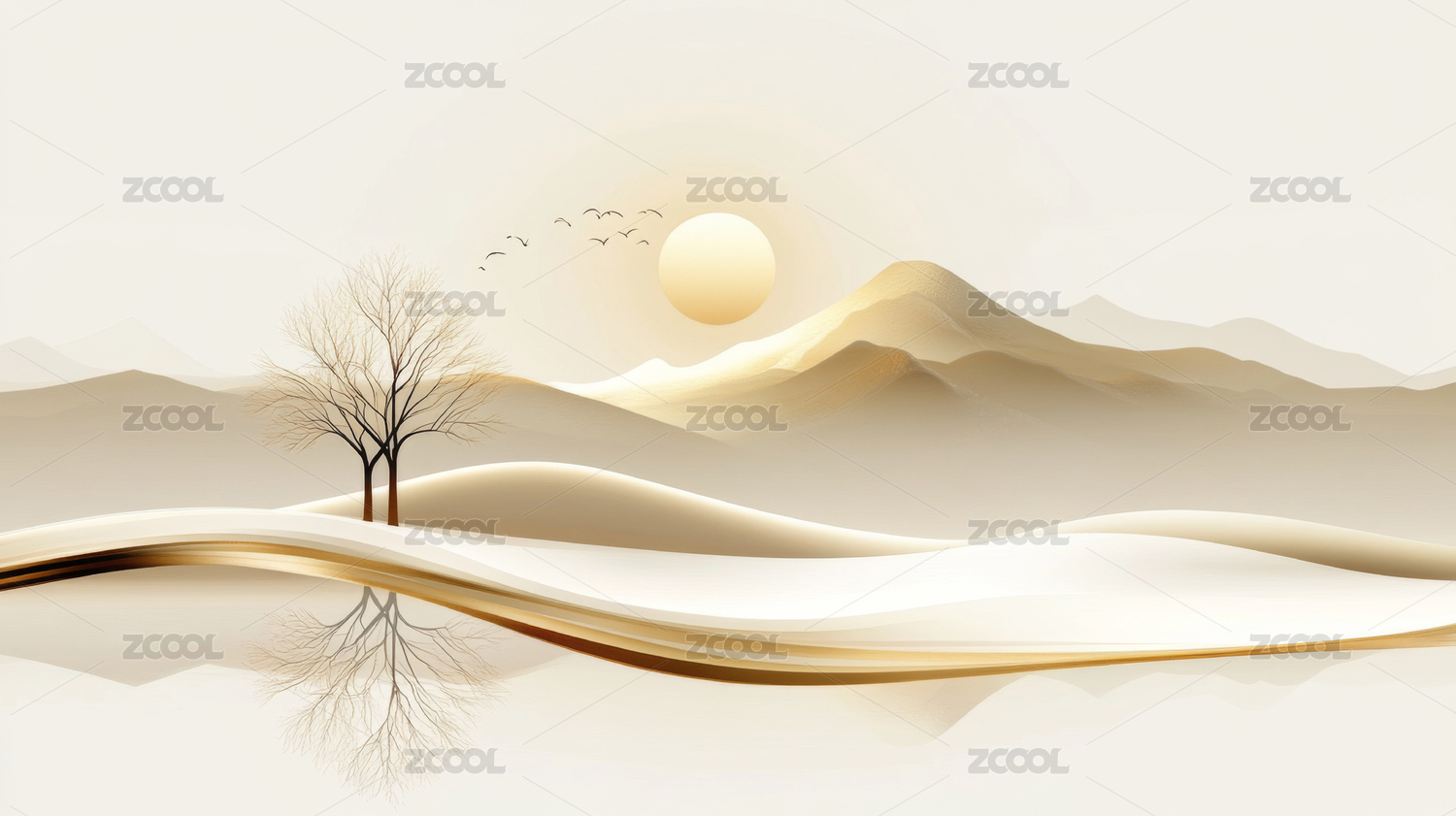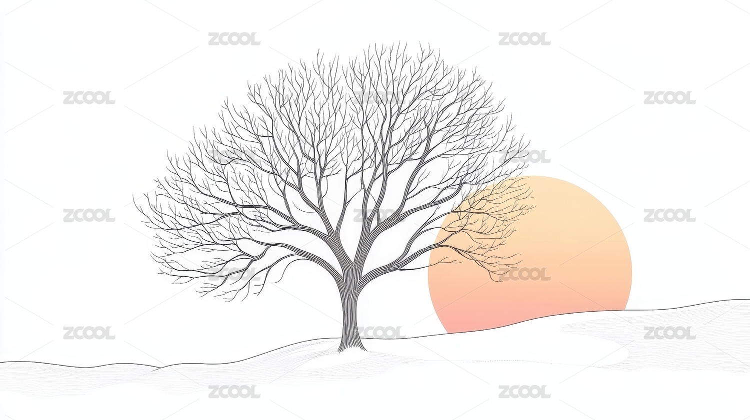 寂静山峦与冬日孤树
