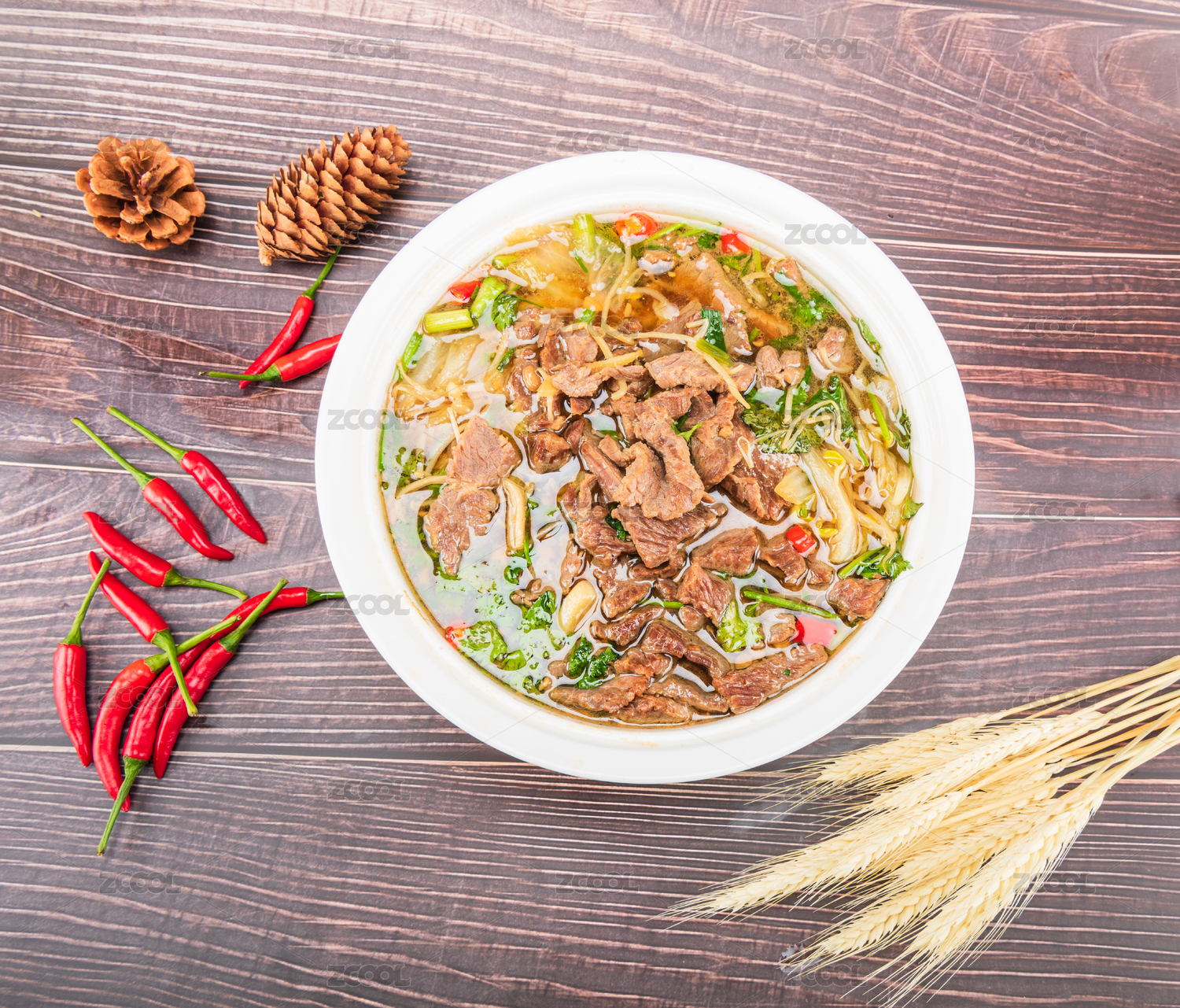水煮牛肉,水煮,牛肉,黄牛肉,白菜,豆芽,中餐,菜肴,香菜,辣椒
