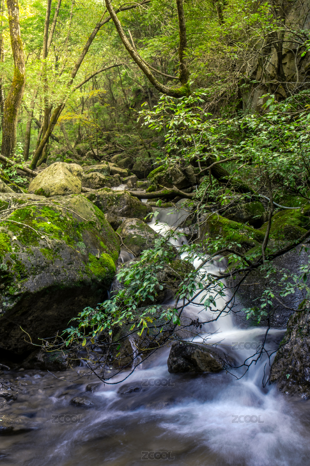 森林中的山泉溪流