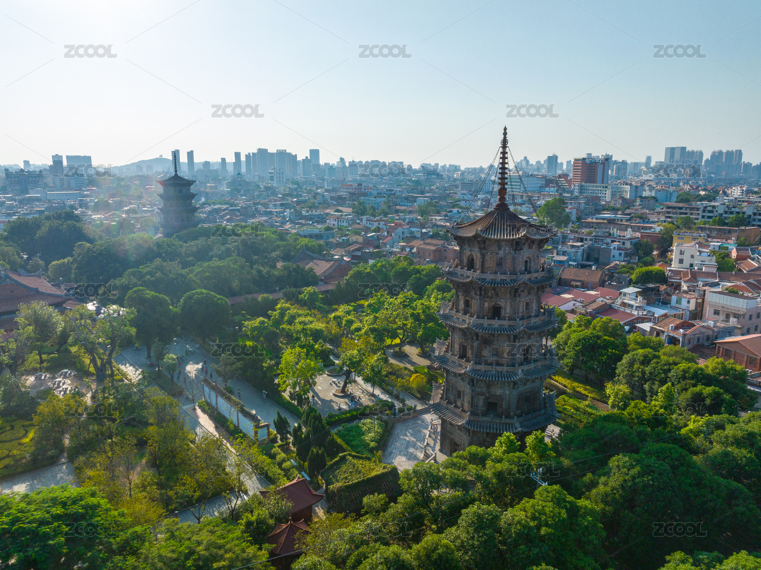 福建,泉州,大开元寺,开元寺,塔,古塔,寺庙,古建筑,航拍视角,著名景点