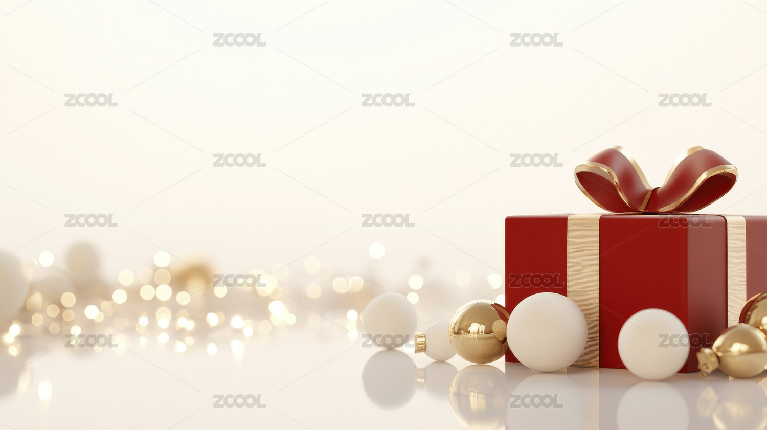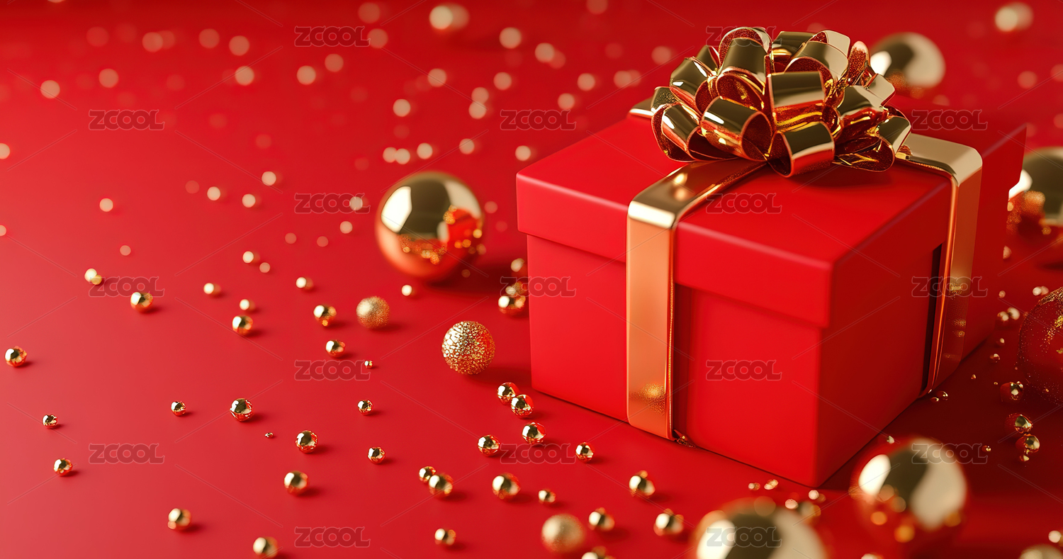 3D渲染红色圣诞装饰礼盒丝带闪耀背景