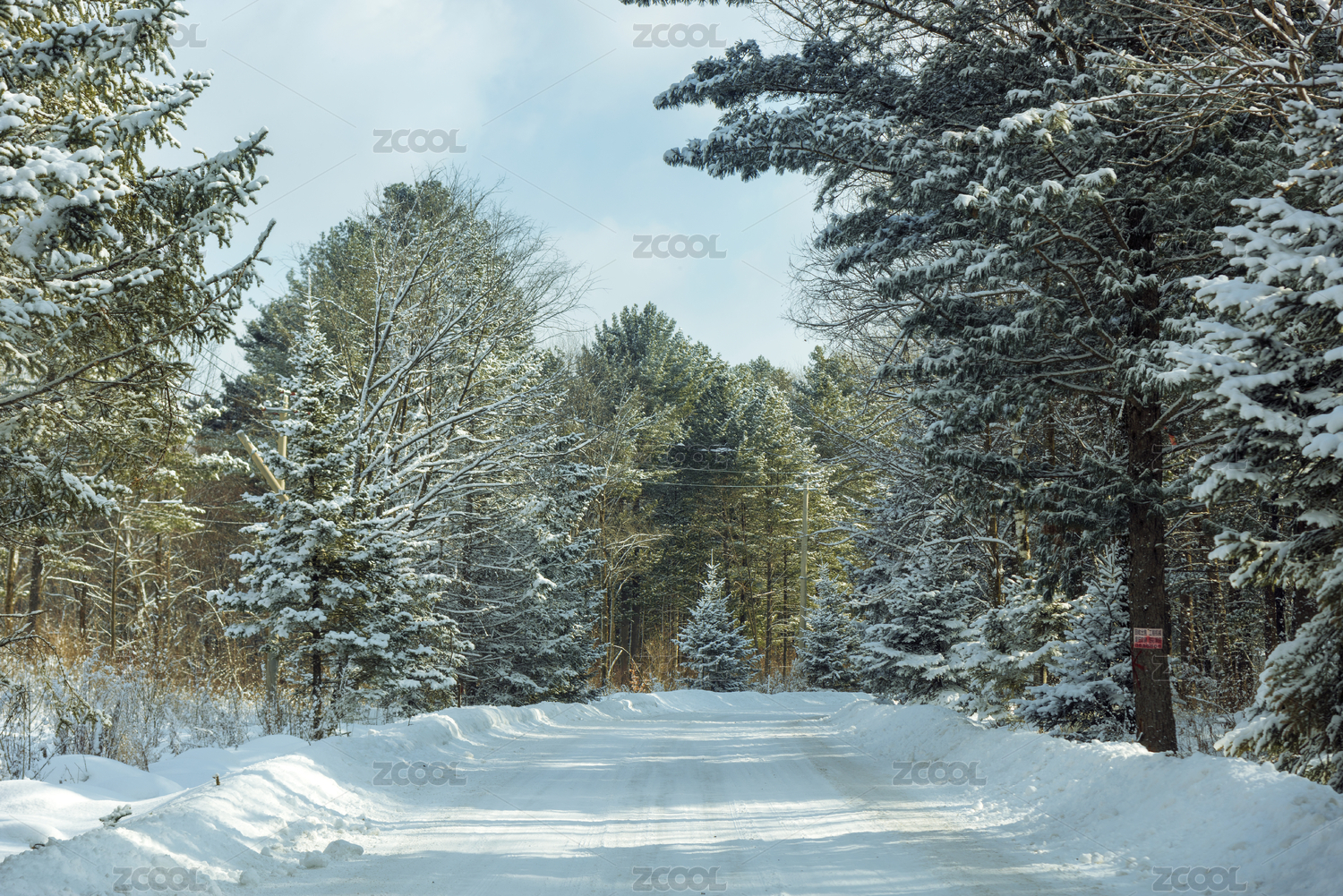 被大雪覆盖的道路上面留下轮胎的痕迹