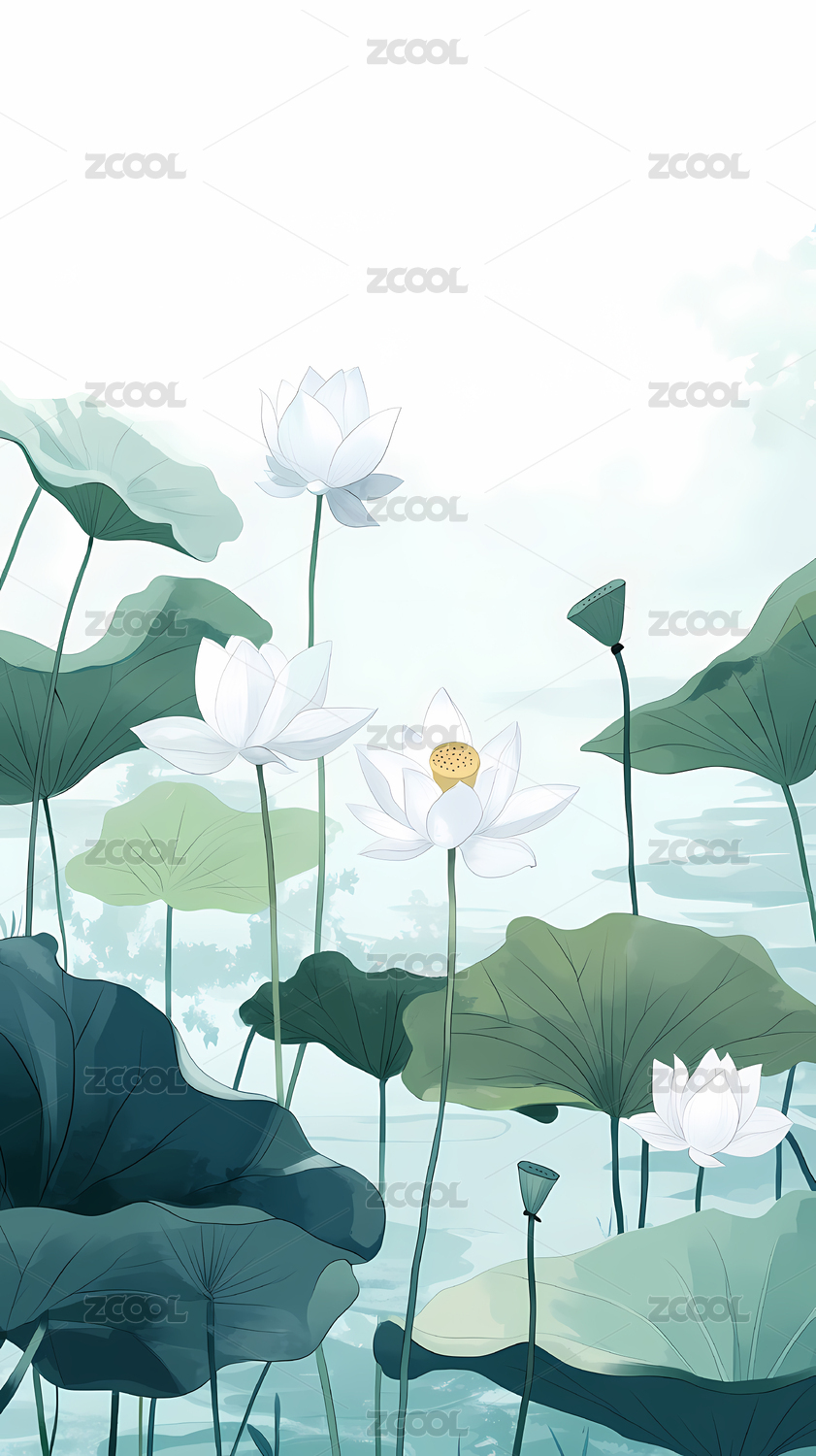 荷花,矢量,蓝天,白云,青山,亭子,荷叶,HESSUV2021,夏天,立夏