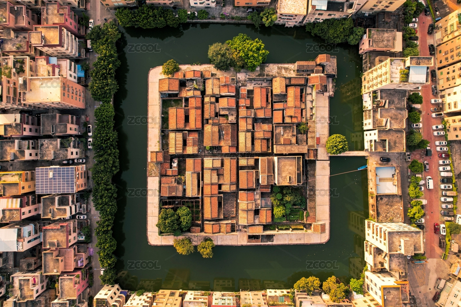 中国广东东莞虎门明清建筑逆水流龟村堡航拍景观