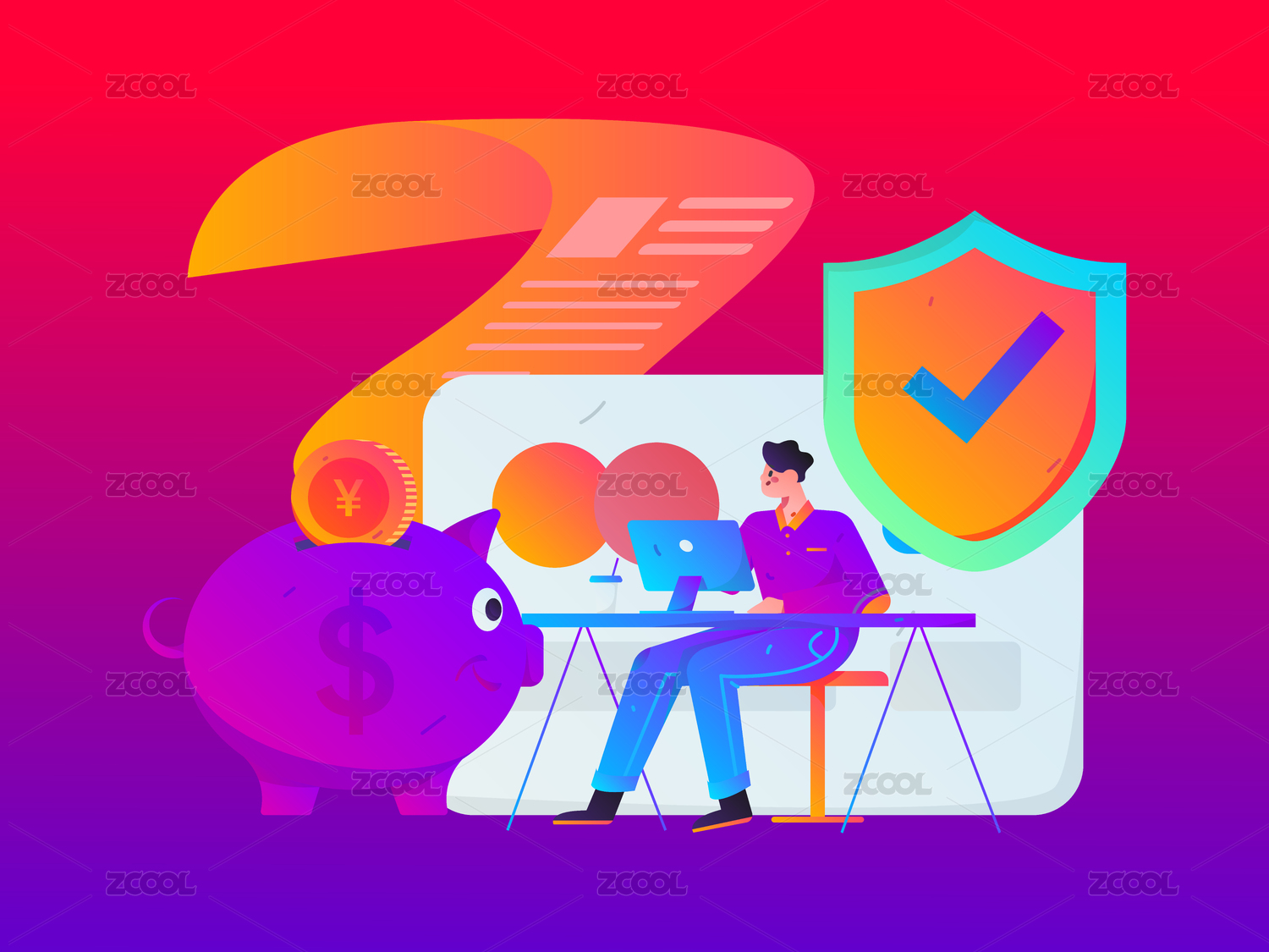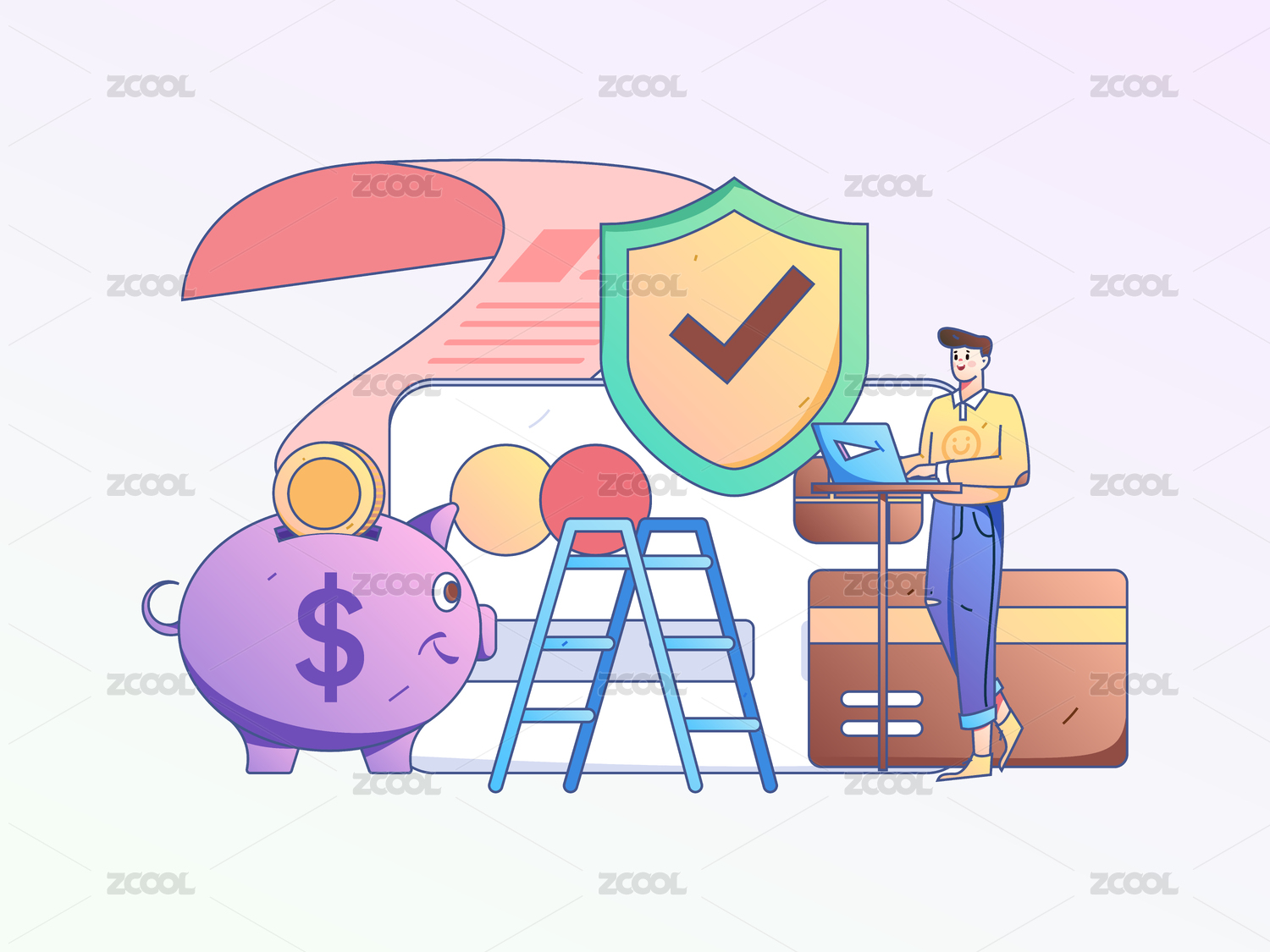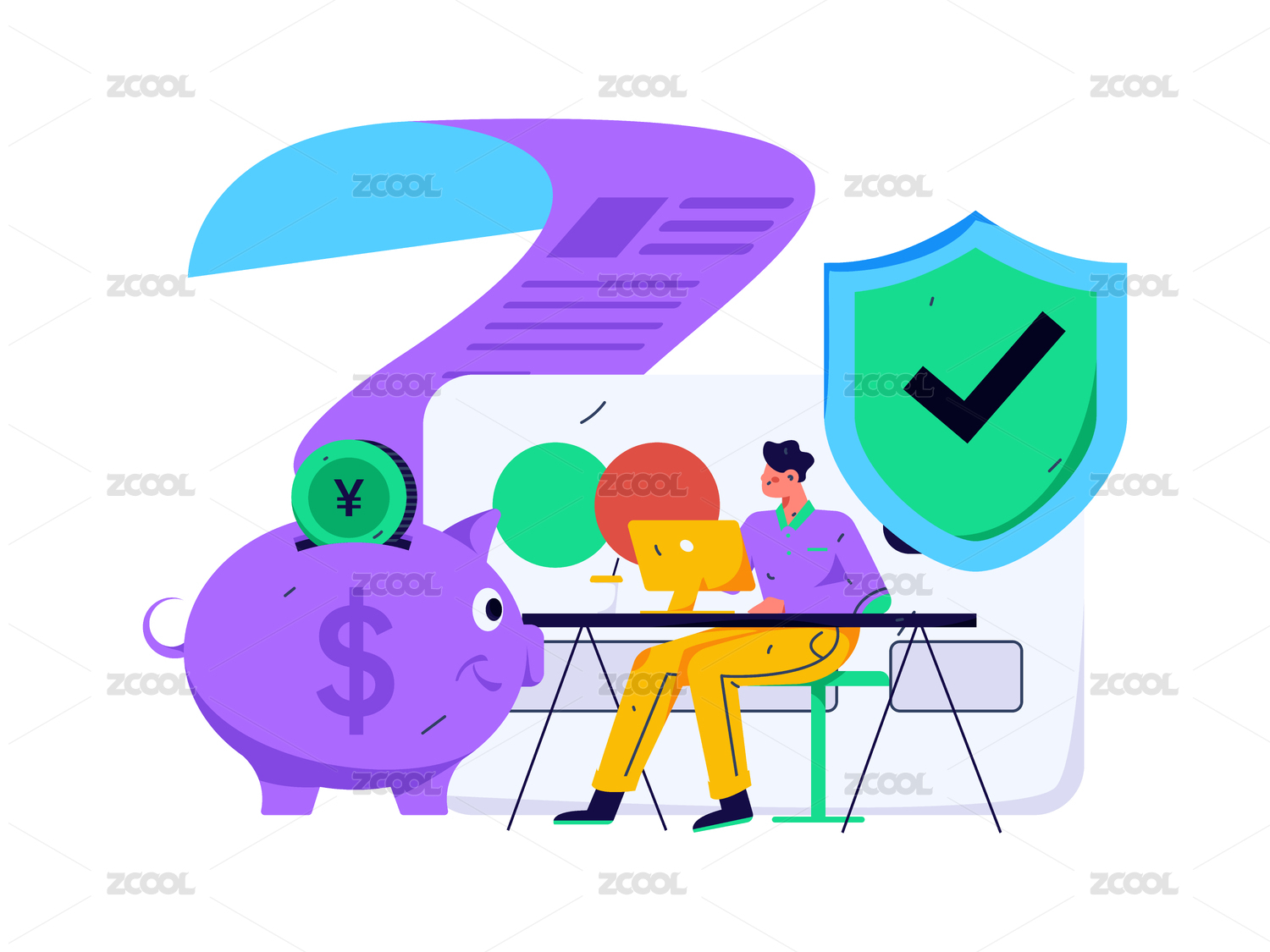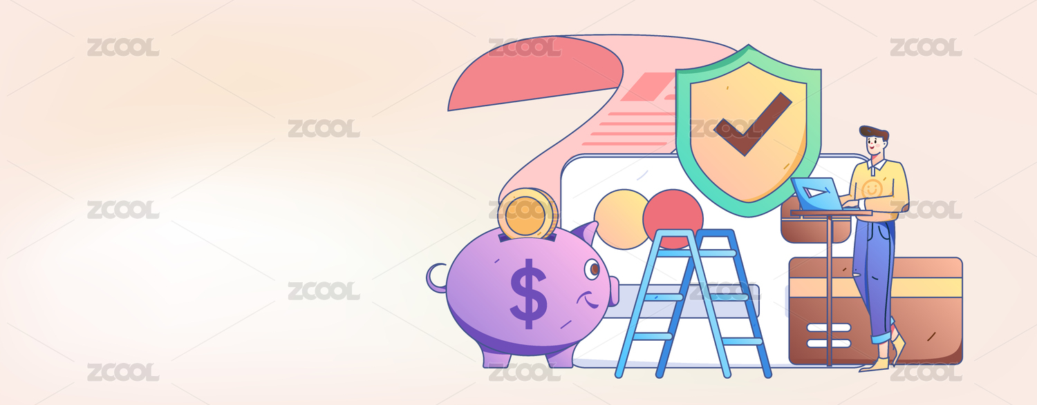 存钱的男子,扁平矢量人物场景创意概念插画