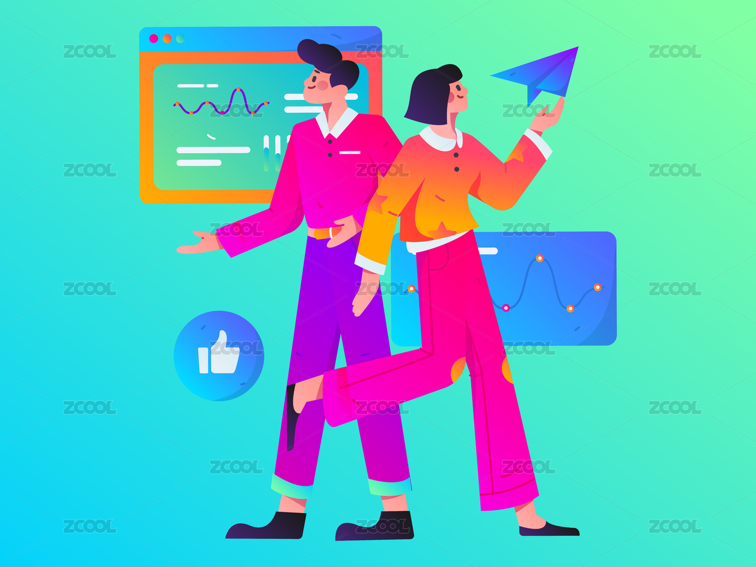 卡通2.5D团队合作共赢职场办公矢量背景插画