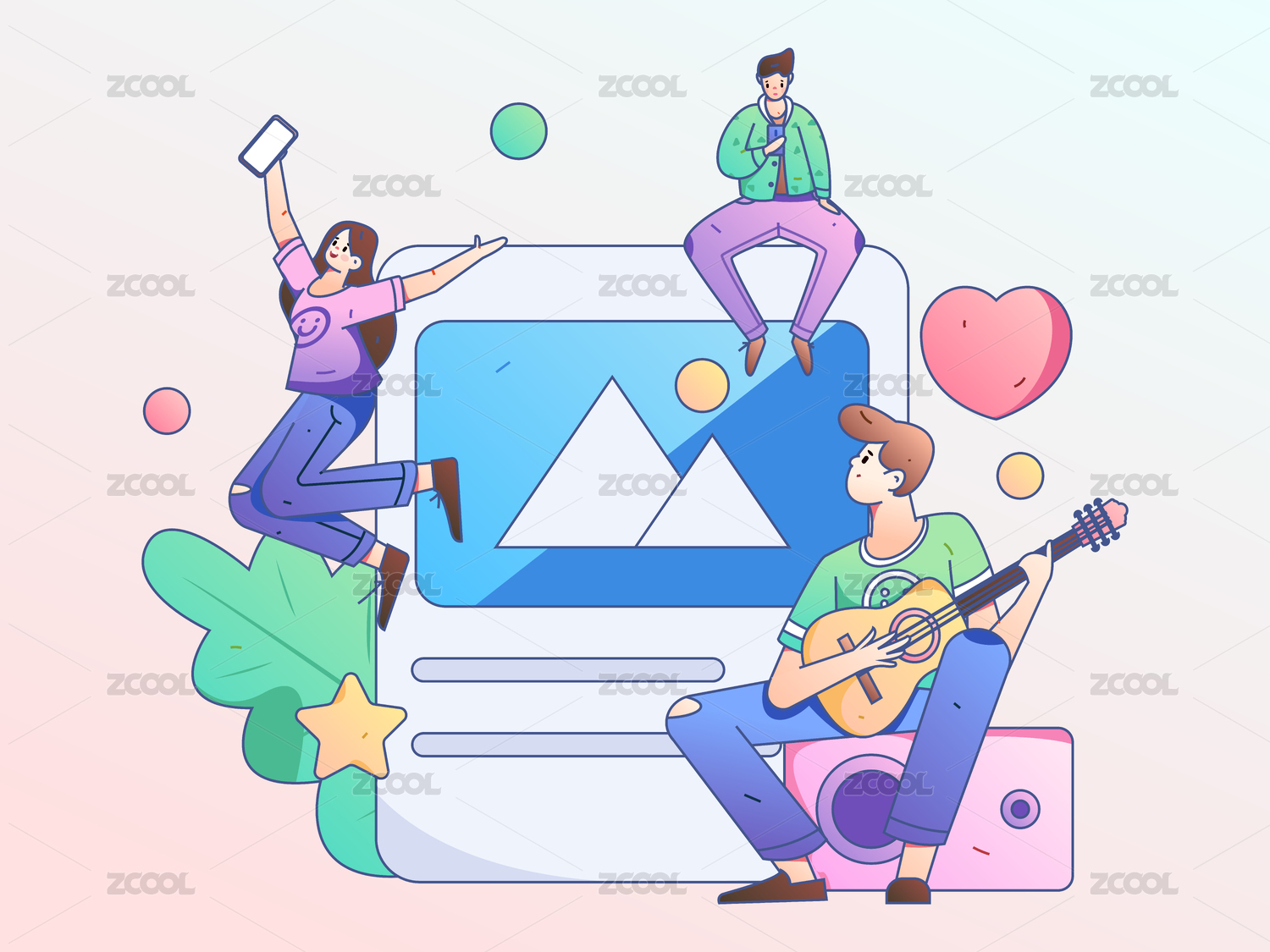 虚拟的人物社交沟通概念商业扁平矢量手绘
