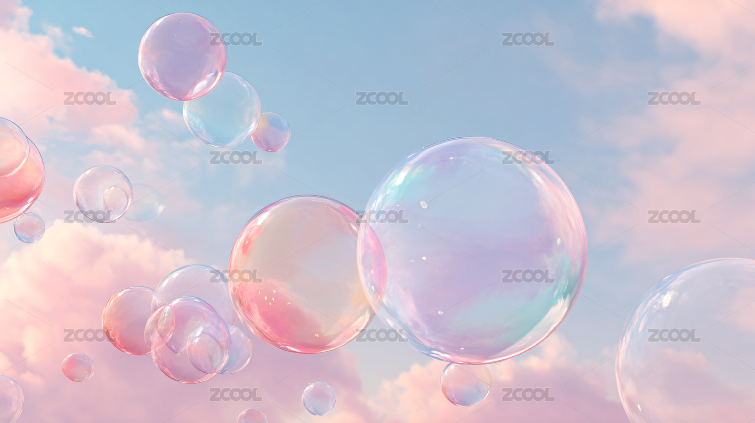 梦幻云层中的彩色泡泡