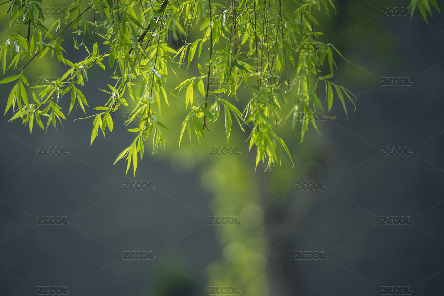 春天的绿色柳树枝