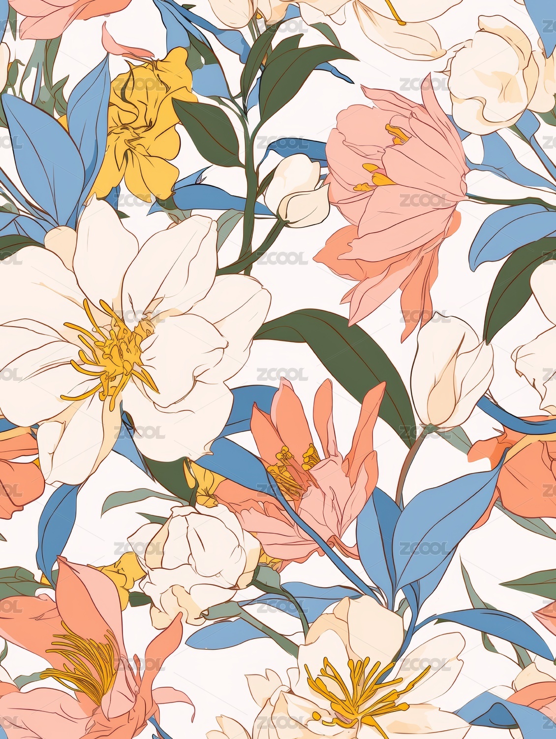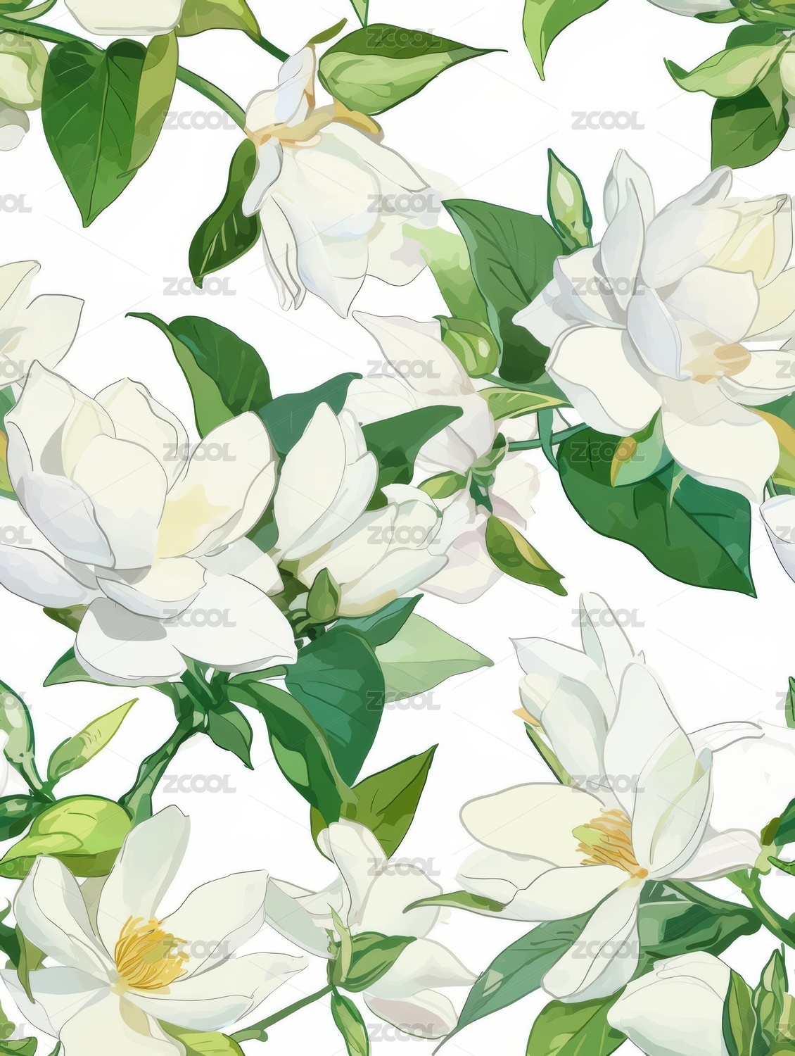 卡通图,图案,栀子花,印花,背景,插画,布料