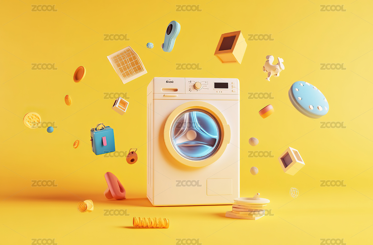 洗衣机,家电,衣服,洗衣,卡通,插画,泡泡