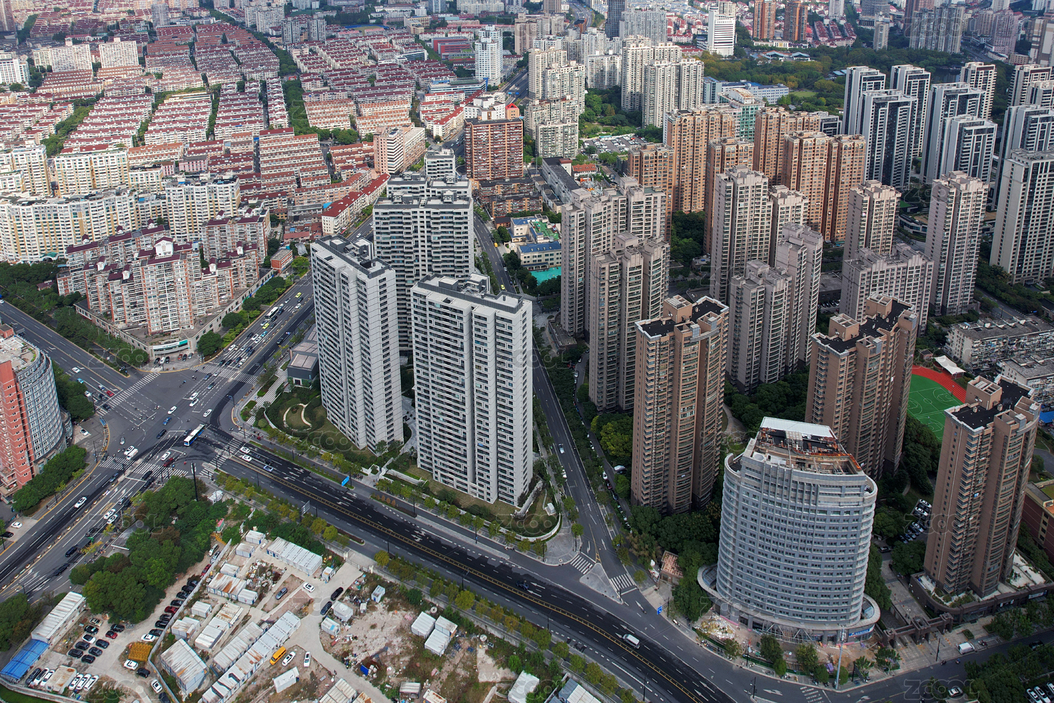 上海,城市,房地产,楼房,航拍,全景,天空,蓝天,白云,蓝色