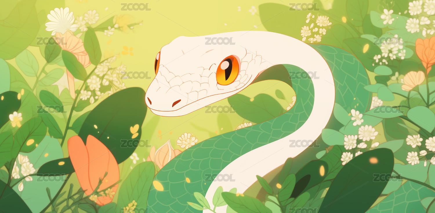 蛇年,蛇,节日,生肖蛇,卡通,插画,女孩,国潮风,中国风,人