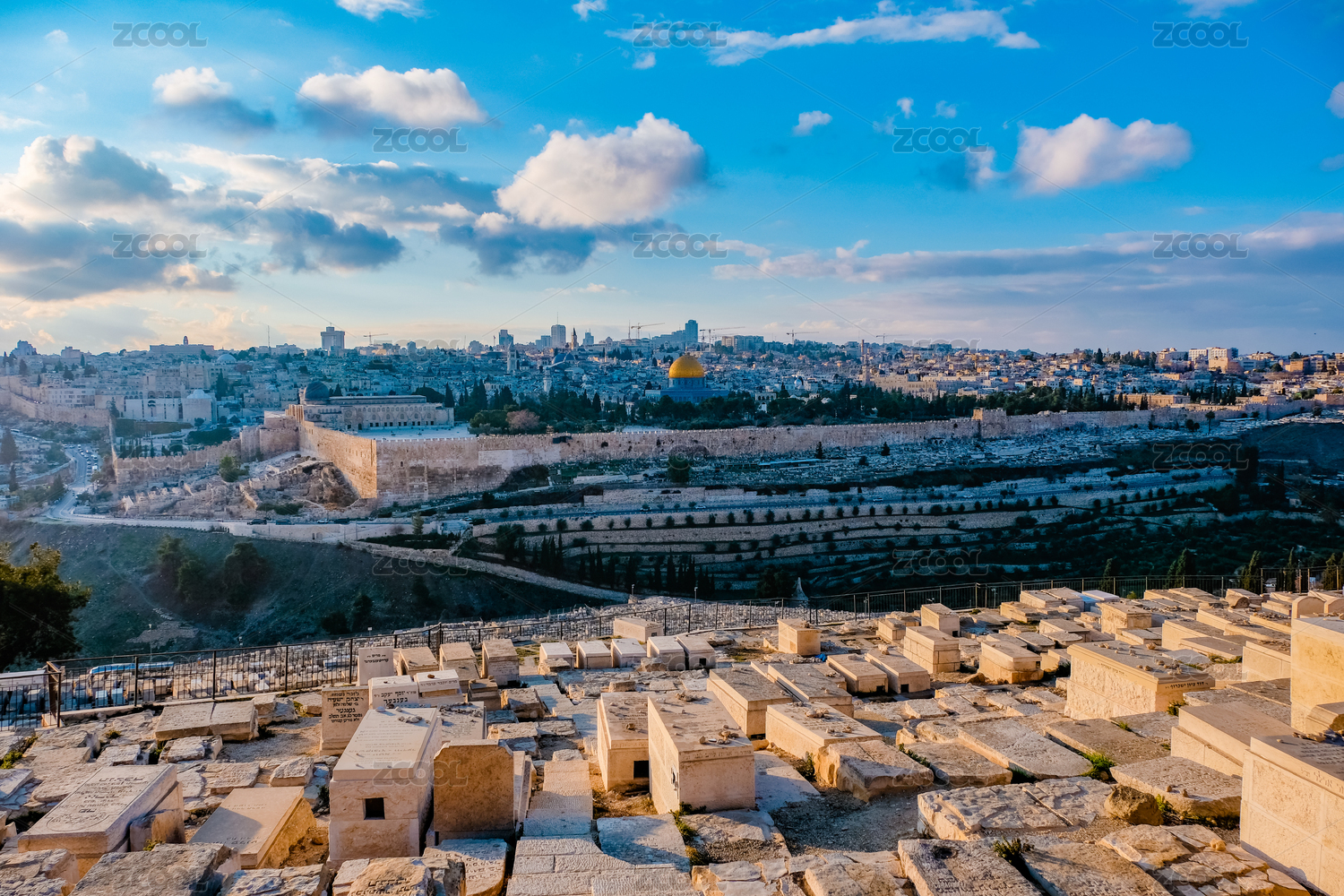 以色列耶路撒冷橄榄山上远眺圆顶清真寺