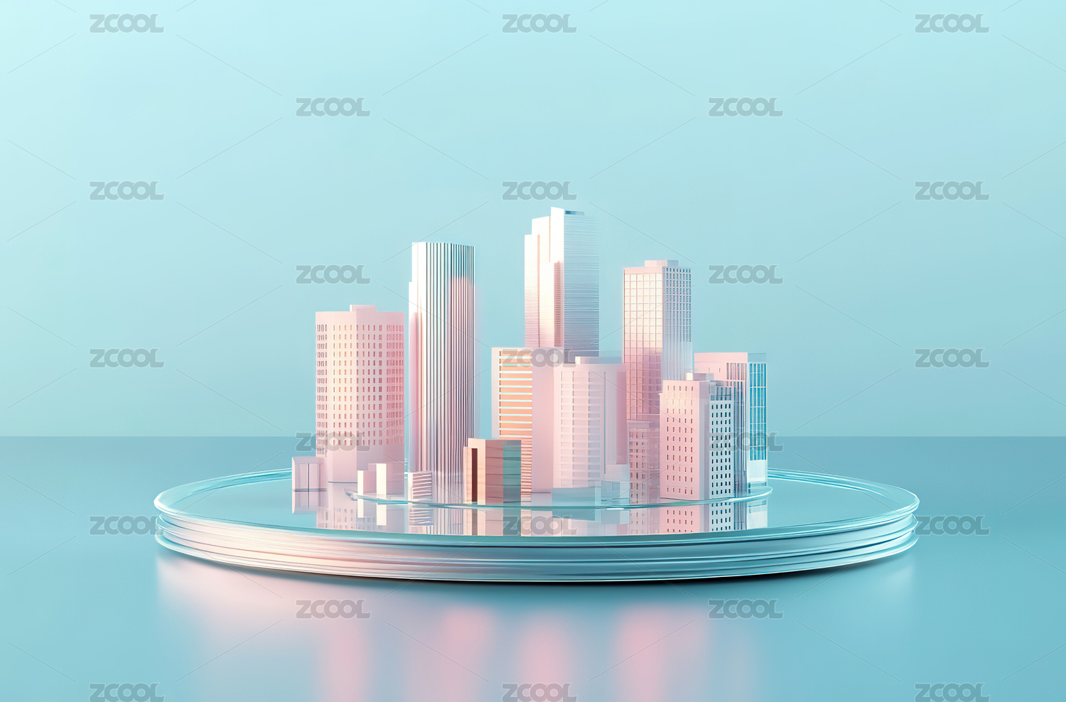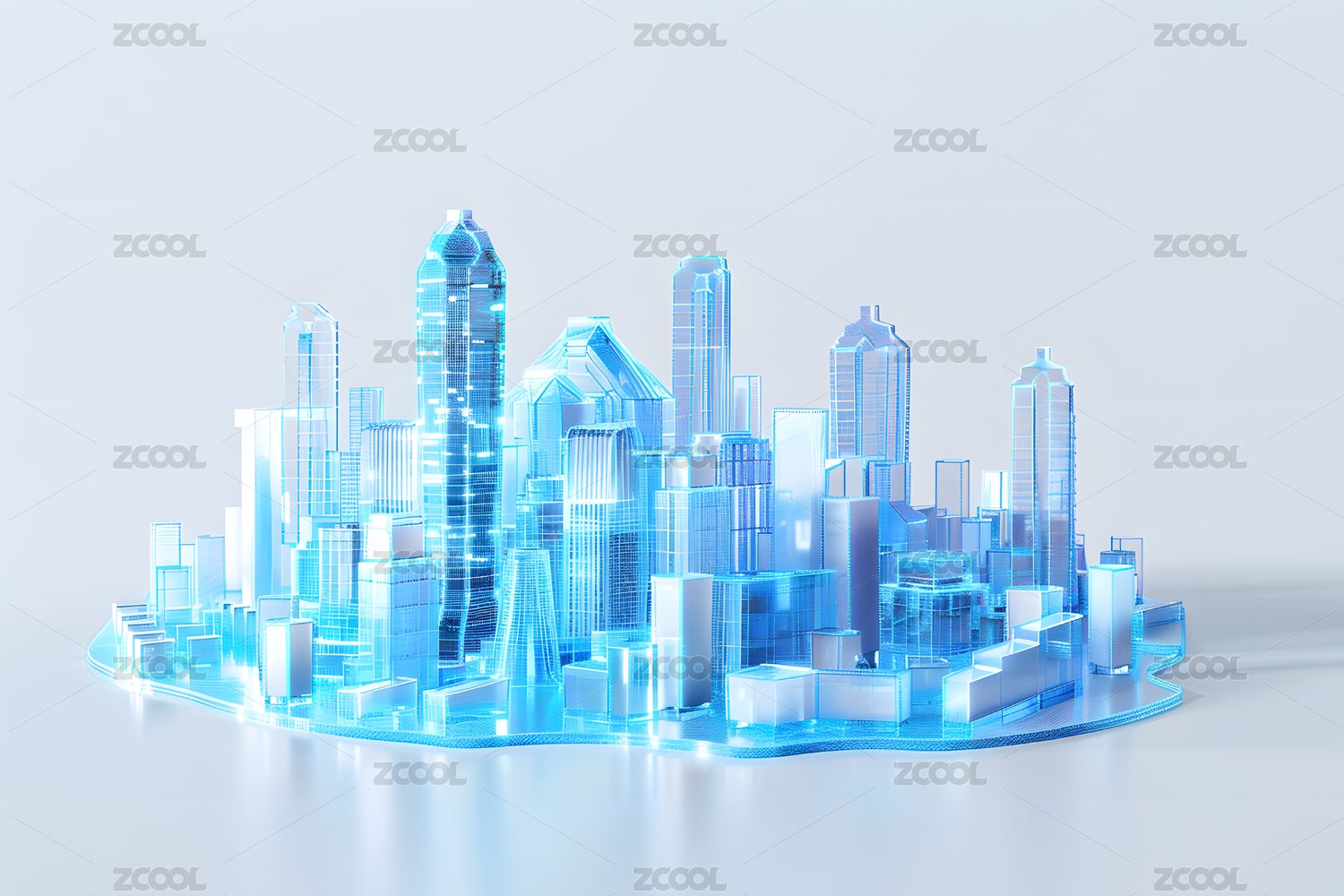 未来城市模型蓝色科技感建筑群