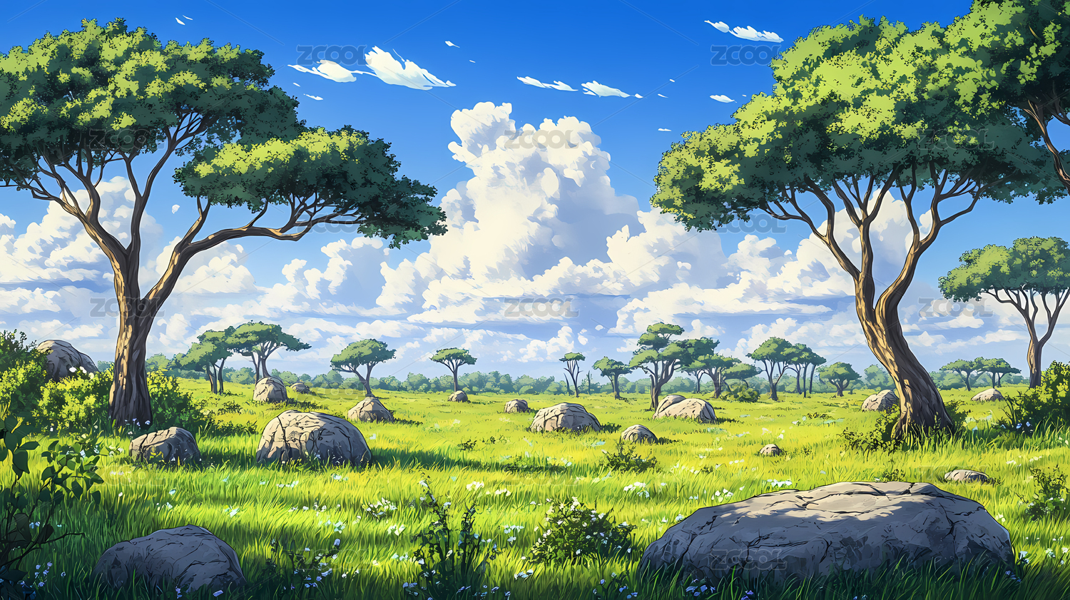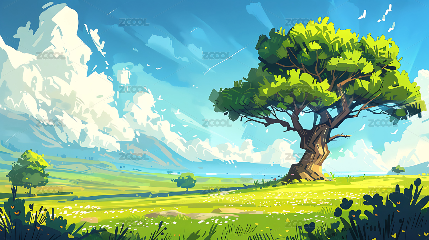山地草原风景插画
