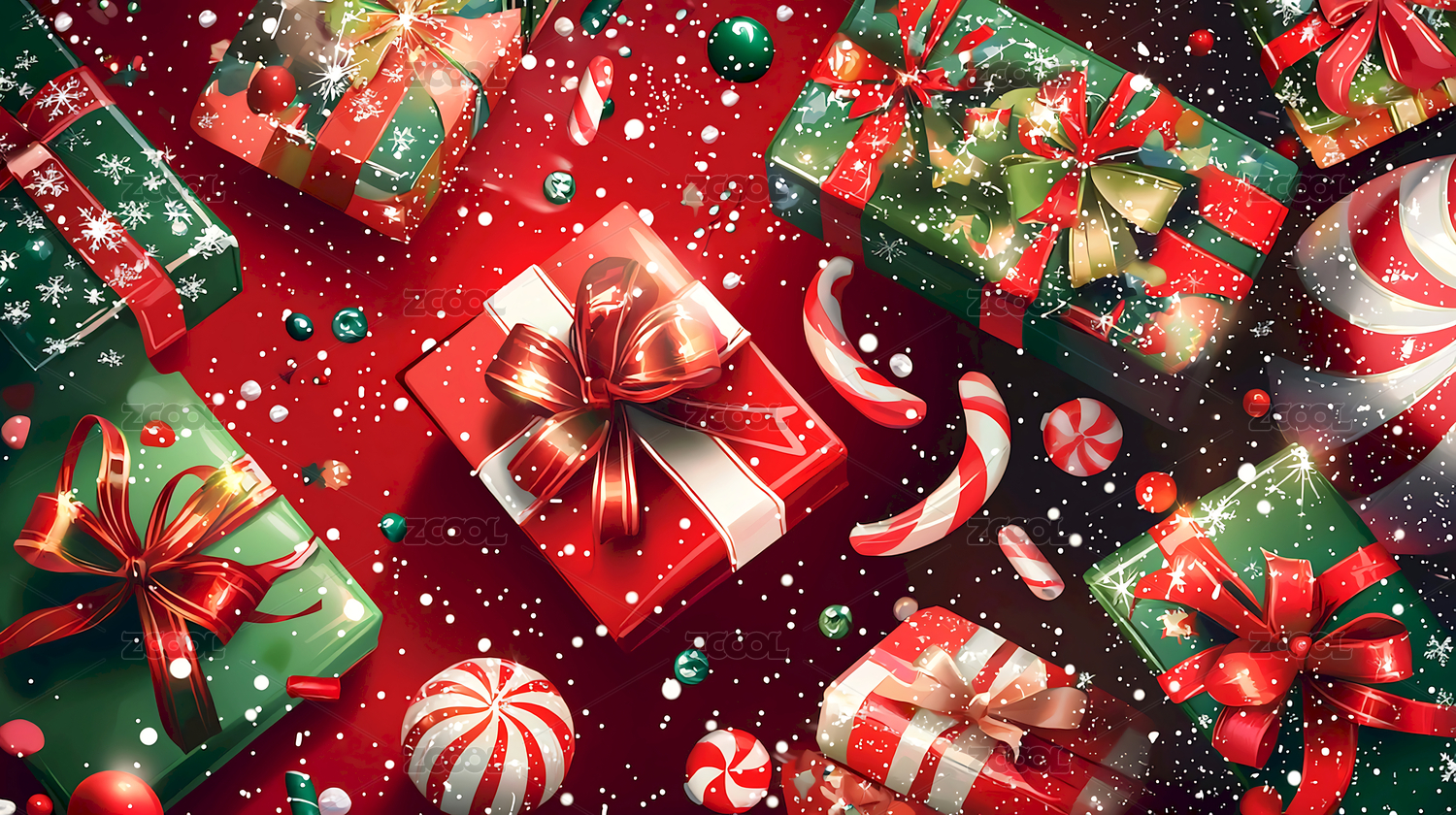 红色圣诞气氛的节日礼盒