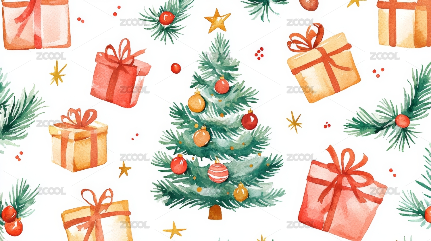 圣诞树与礼物装饰的节日氛围