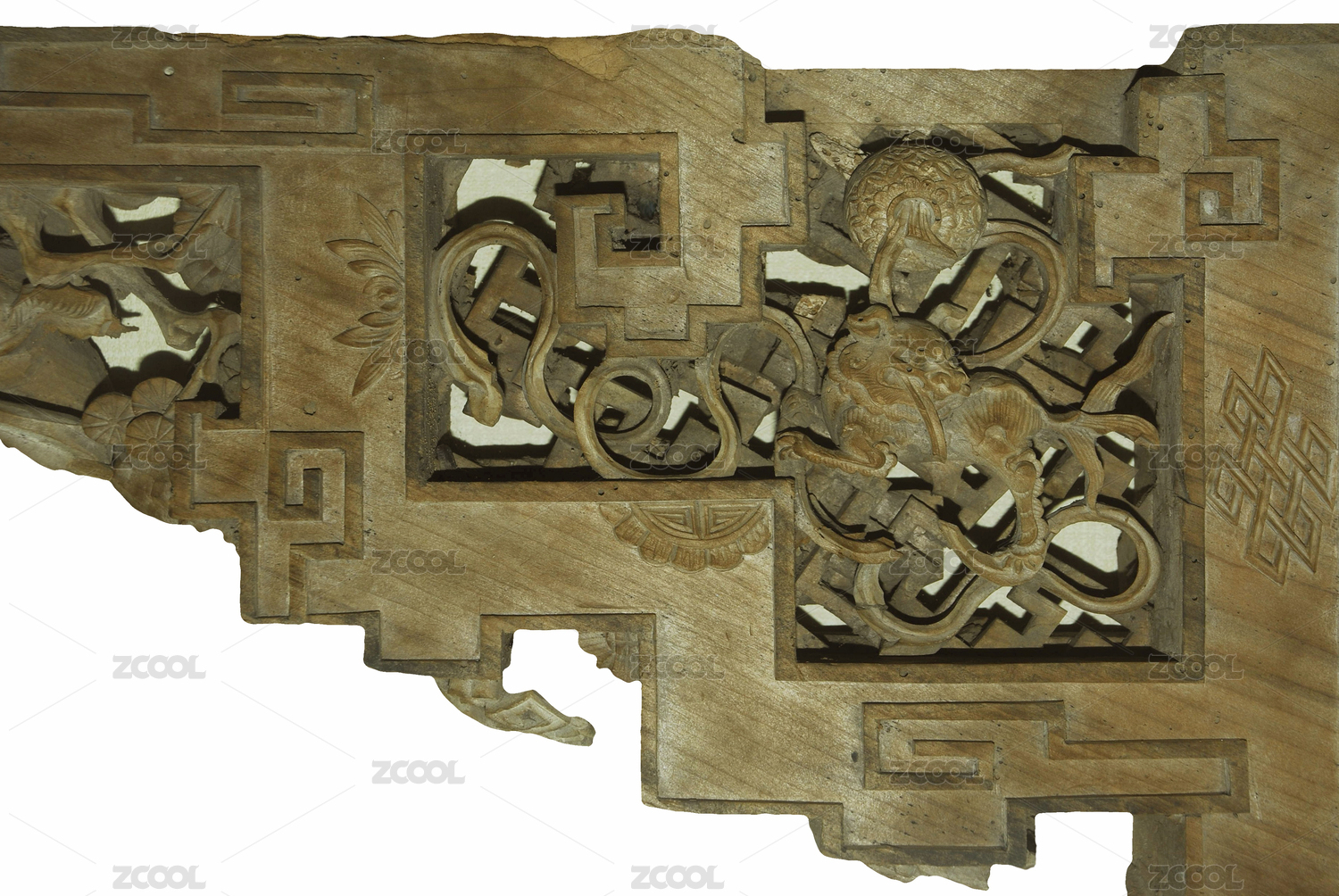 中国福建省闽北居家传统工艺清代龙纹木雕静物装饰品