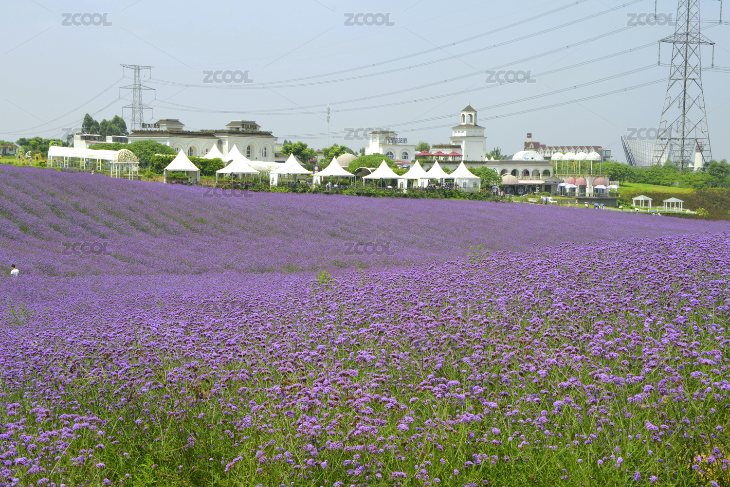 公园里的马鞭草花海与风车,福建龙岩