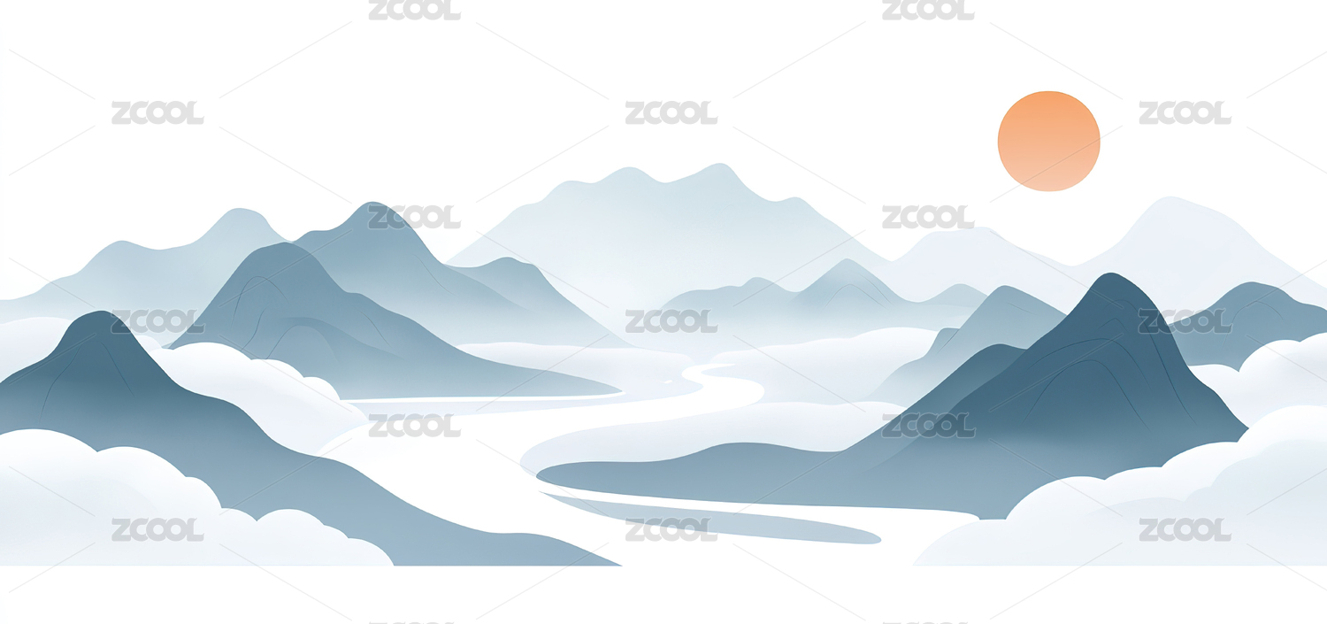 横幅,现代水墨画,创意水墨画,水墨山水,茶文化,旭日东升,日出东山,酒包装,新中式水墨画,室内装饰画