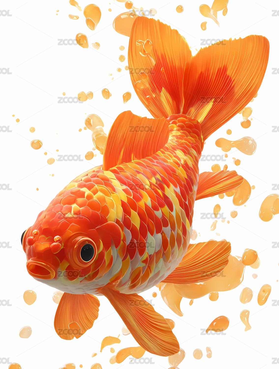 可爱的锦鲤3d形象,新年跳跃琉璃材质鲤鱼