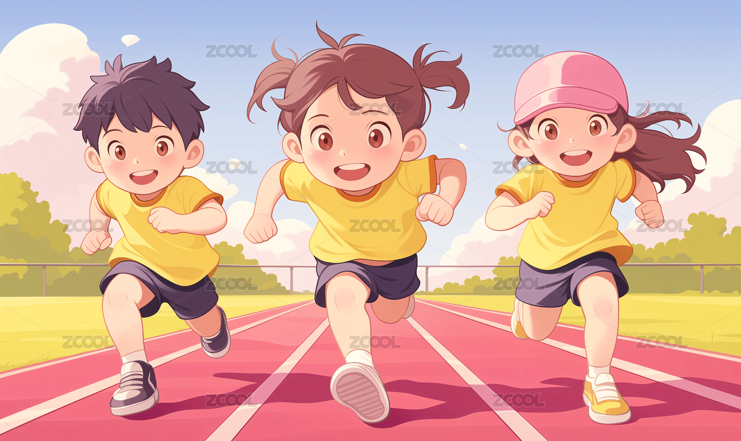 儿童运动会赛跑的场景插画,夏天节气小孩穿