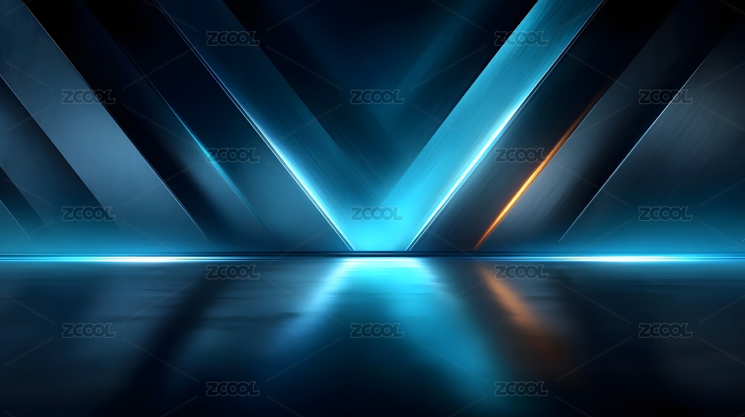 酷炫蓝色光线的虚拟科技空间