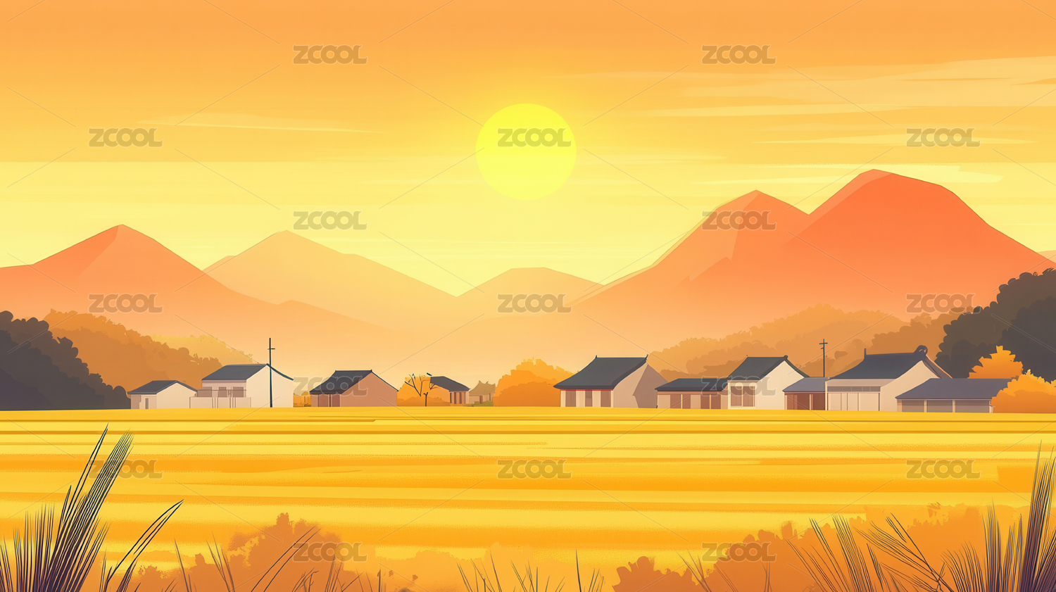 立秋节气秋天农业收获农田粮食成熟秋收插画
