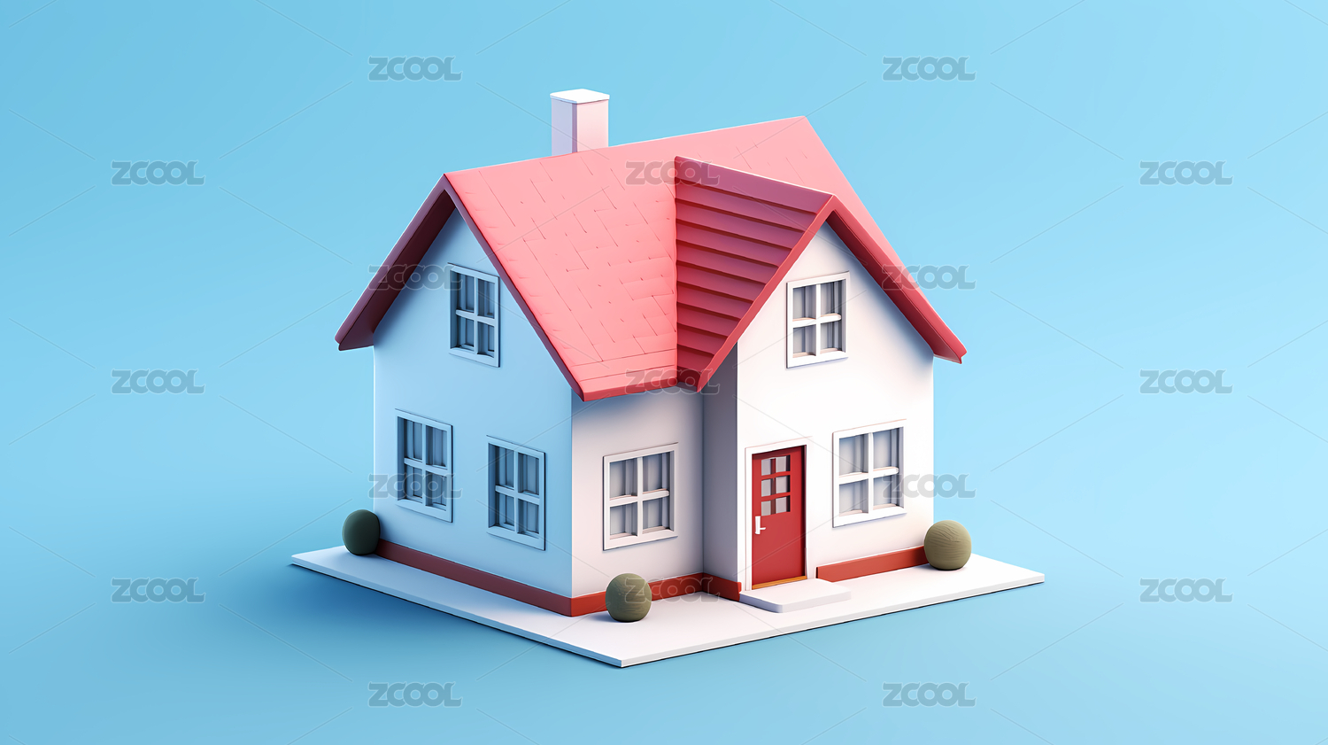 蓝色背景现代舒适小屋写实设计
