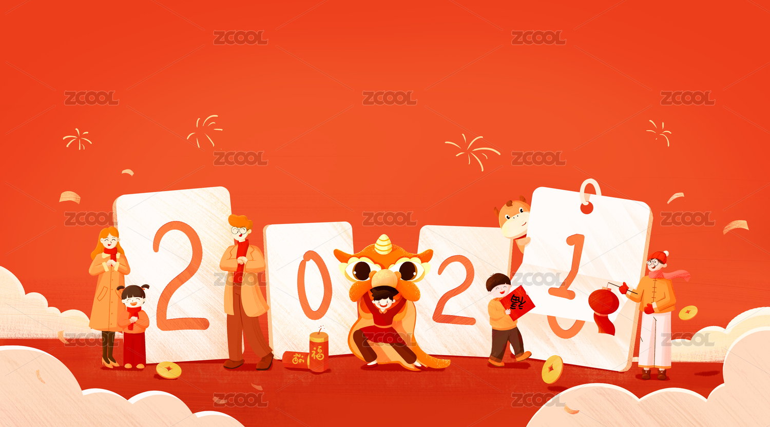 春节新年手绘插画