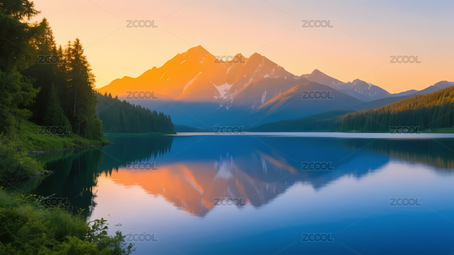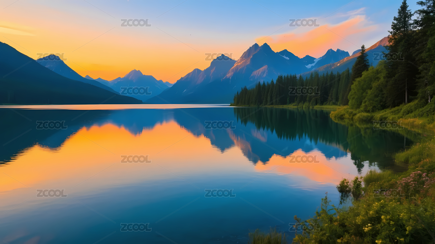 宁静祥和的湖光山色倒映着秋日的壮丽景色