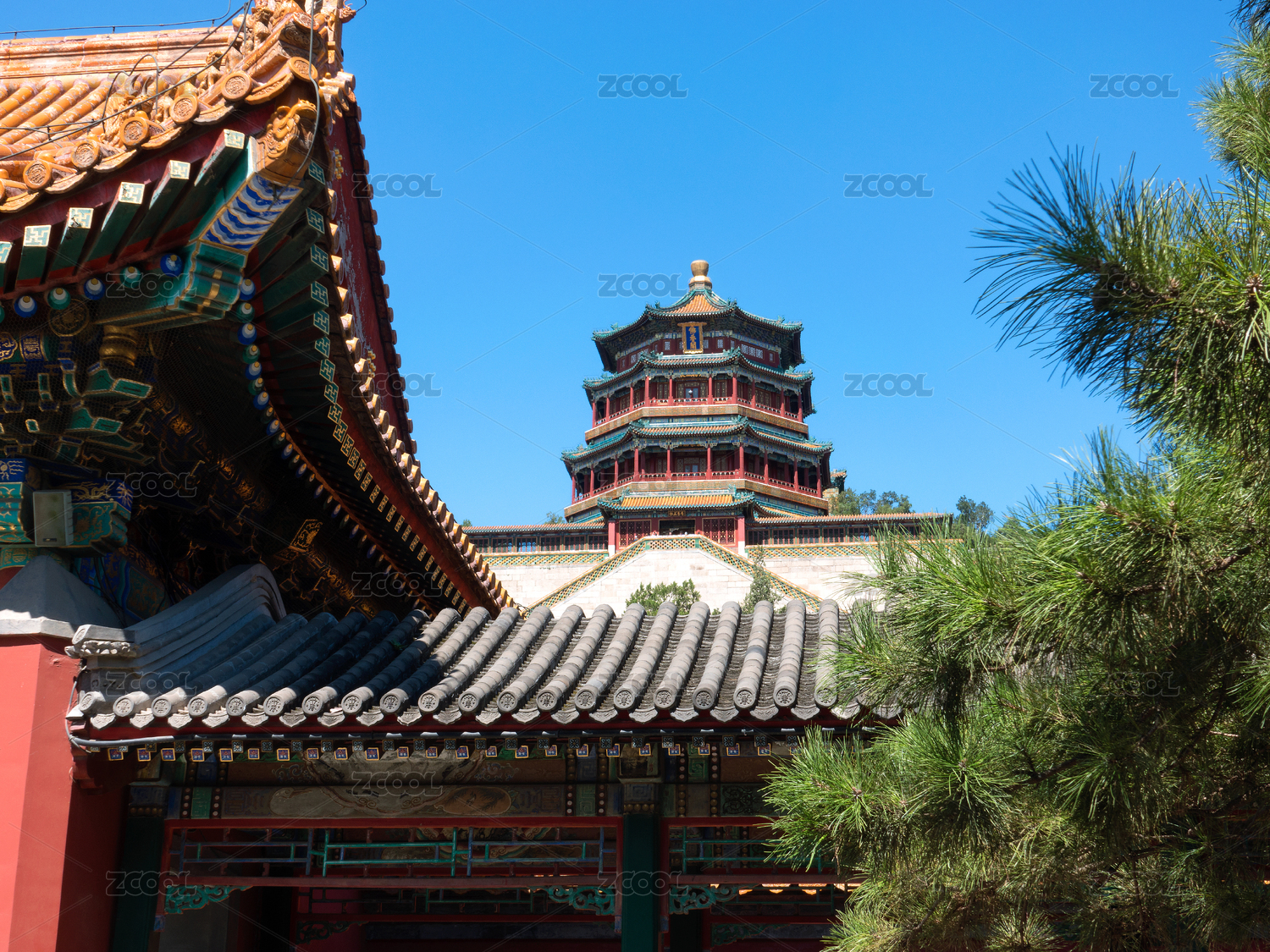 北京,颐和园,佛香阁,仰视,园林,皇家园林,蓝天,晴天,秋季