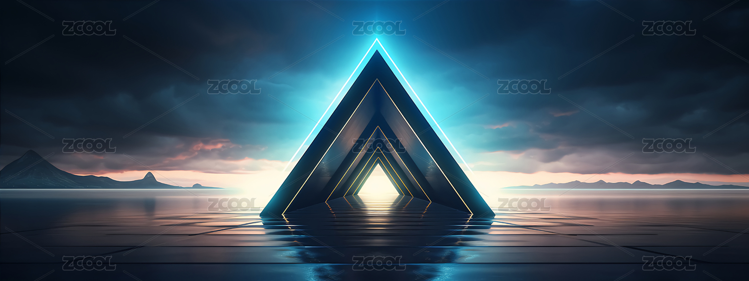 三角,门,山脉,水面,反射,夜空,星星,光线,神秘,幻想