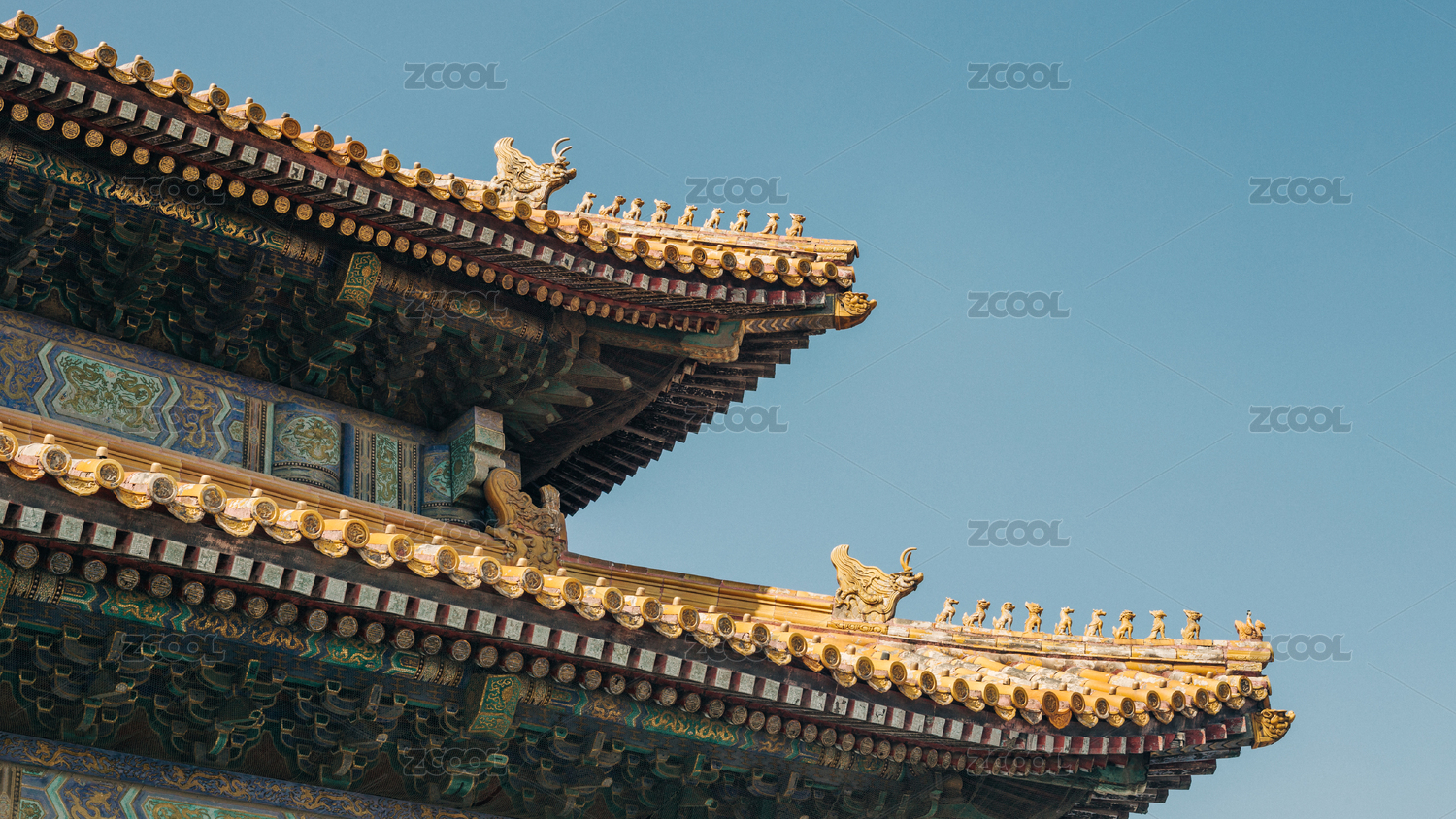 中国北京故宫宫殿屋檐屋脊特写背景