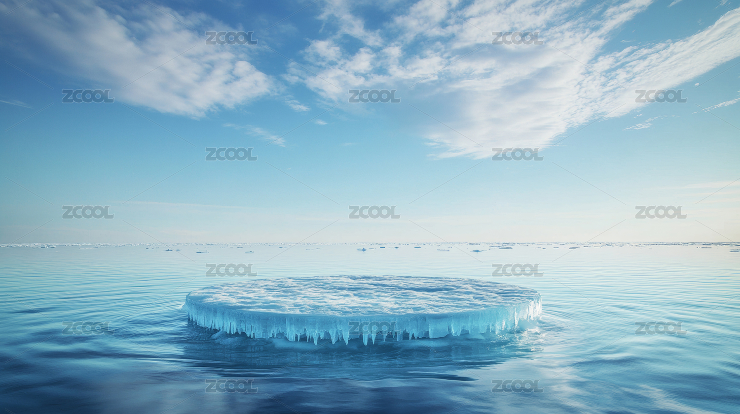 蓝天浮冰下的静谧水面