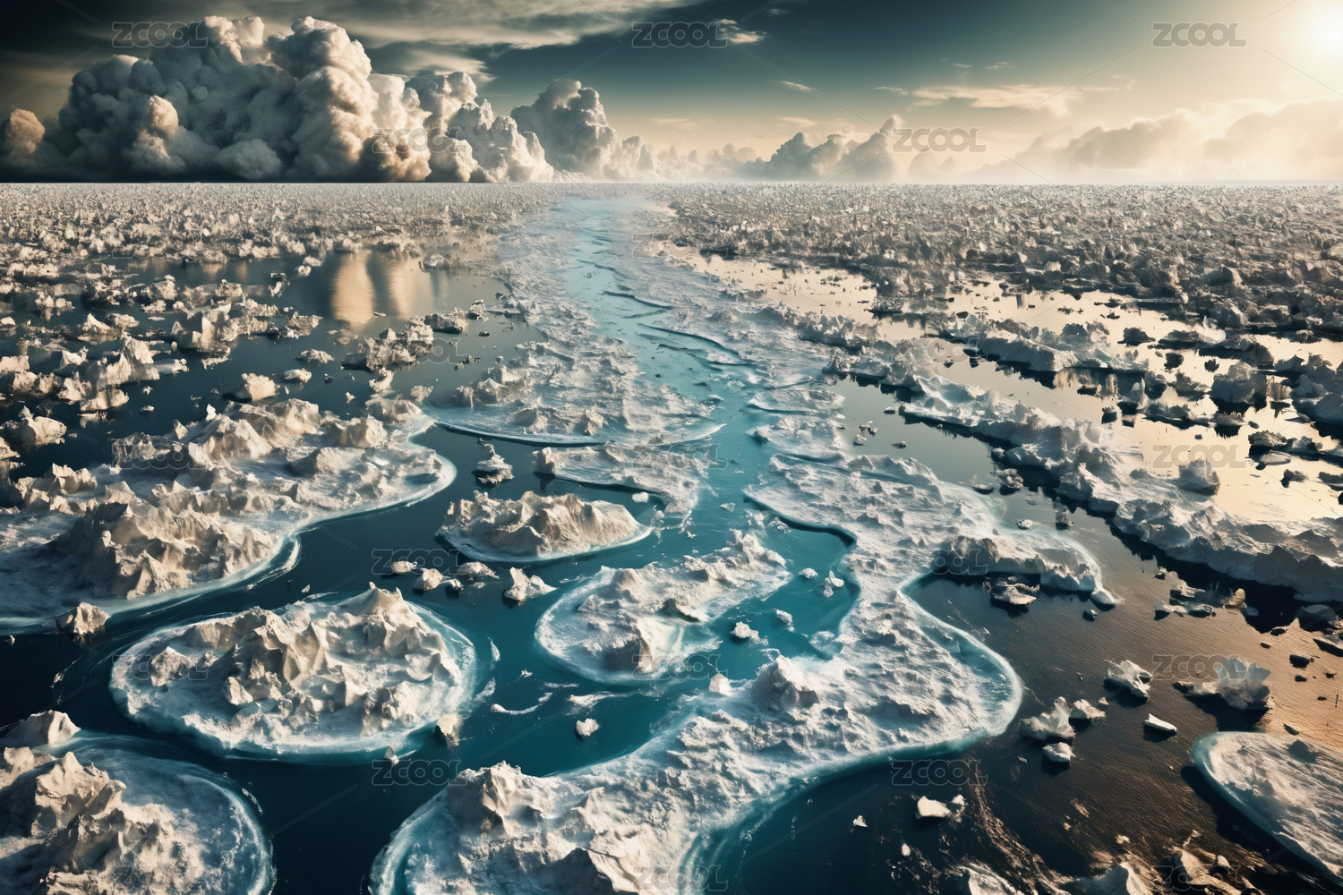 北极破碎融化的冰山浮冰