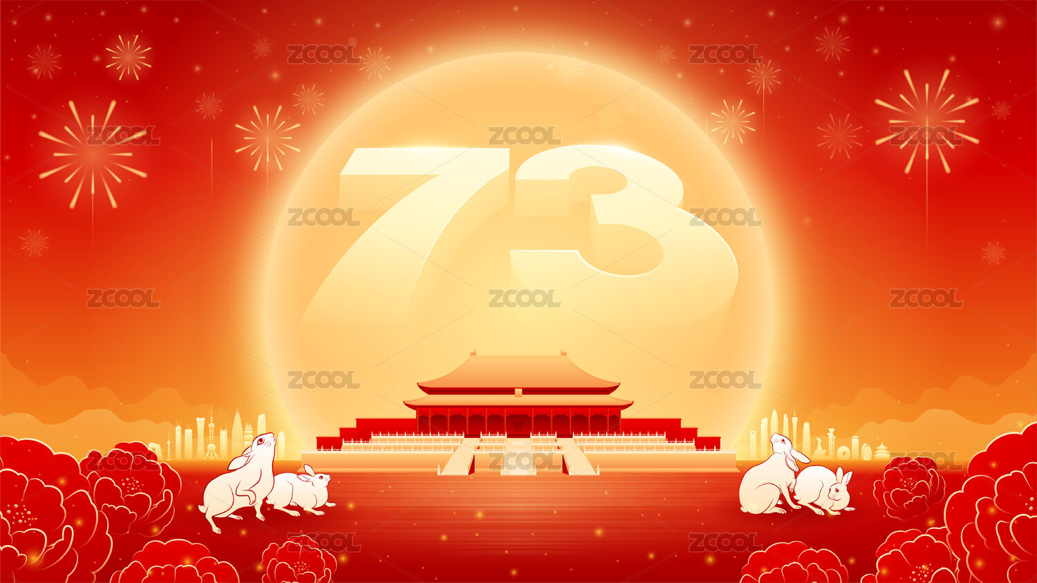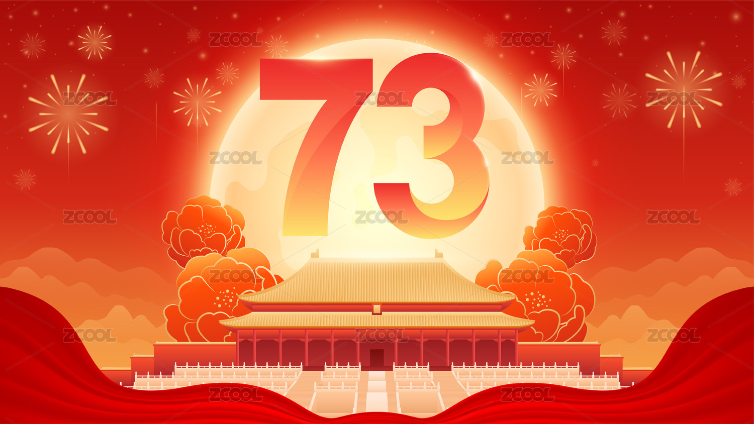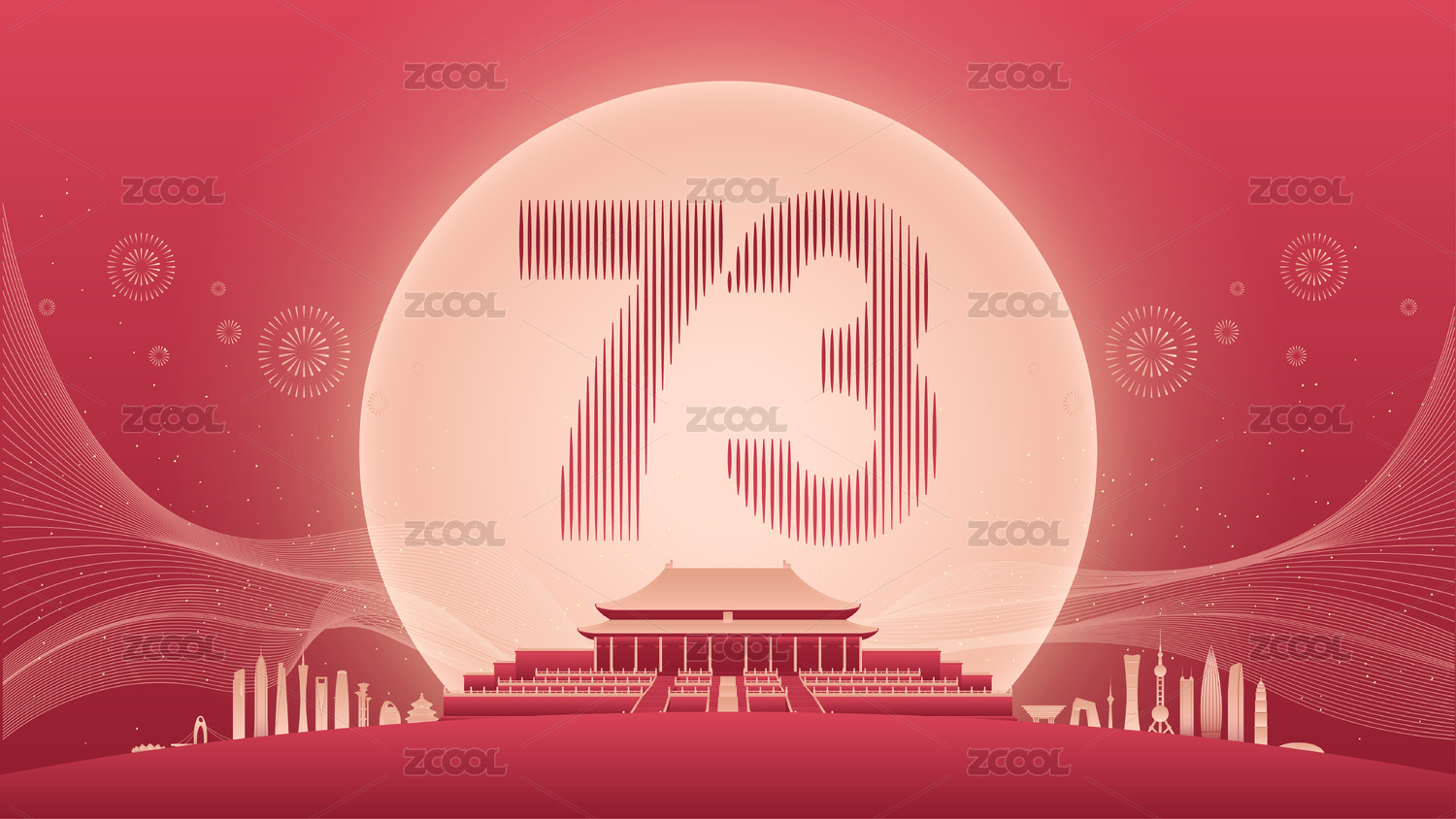 国庆,插画,国庆节,十一,红绸,太阳,星光,粒子,道路,庆祝