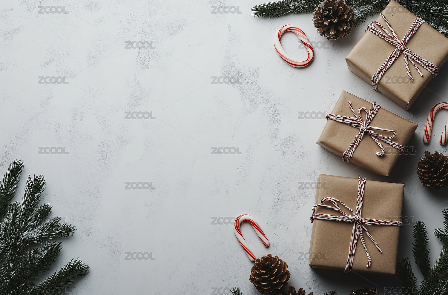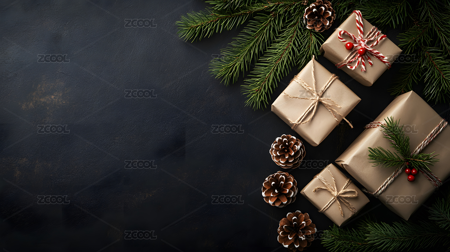 礼物,松枝,圣诞,节日,装饰,礼品盒,包装,蝴蝶结,红色,绿色