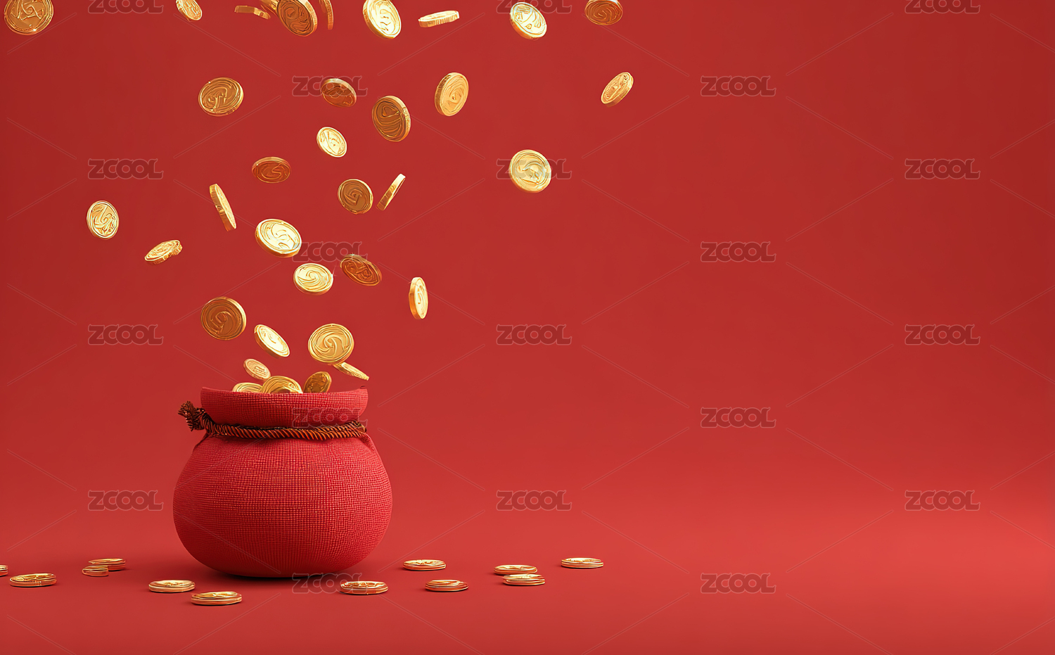 红色背景下的金币