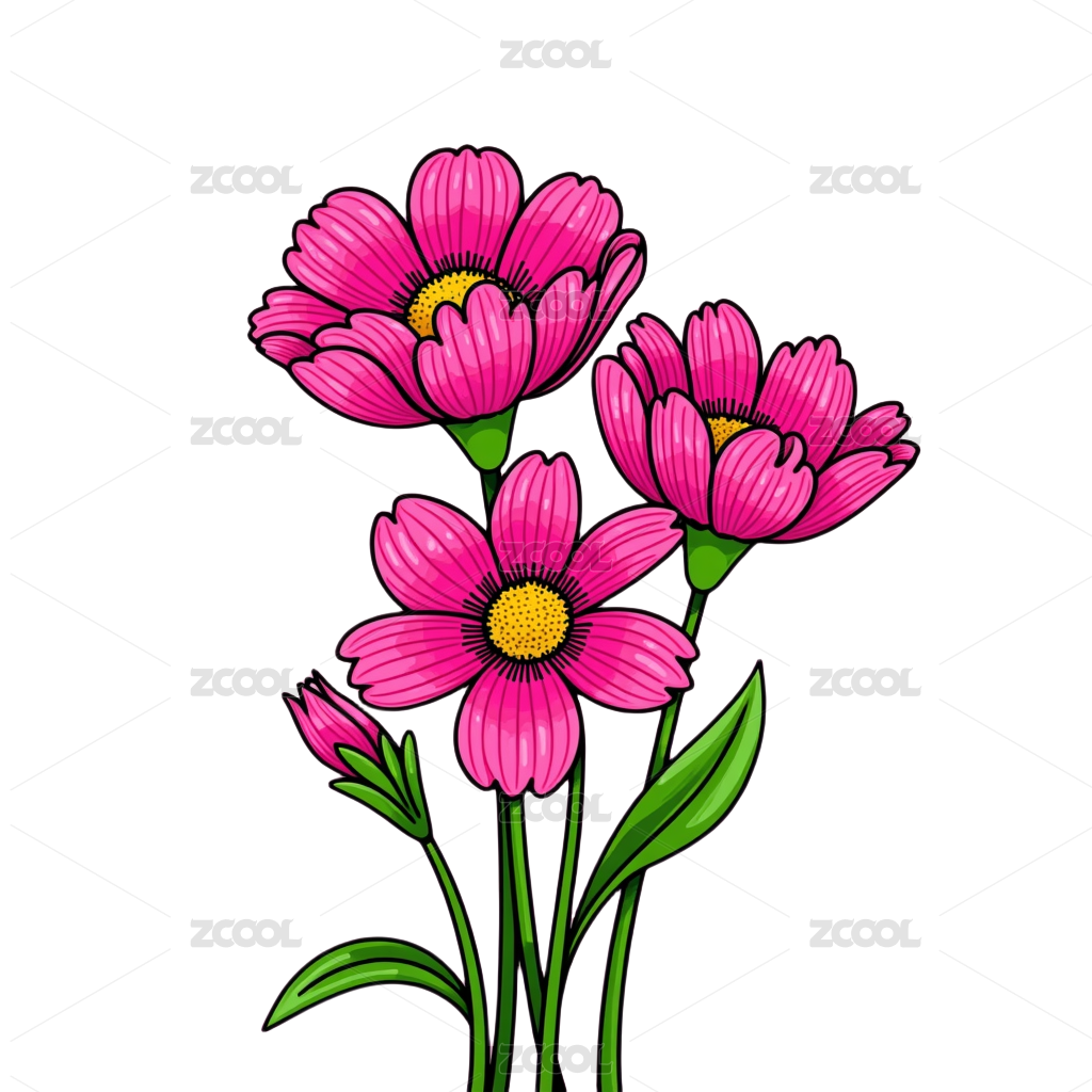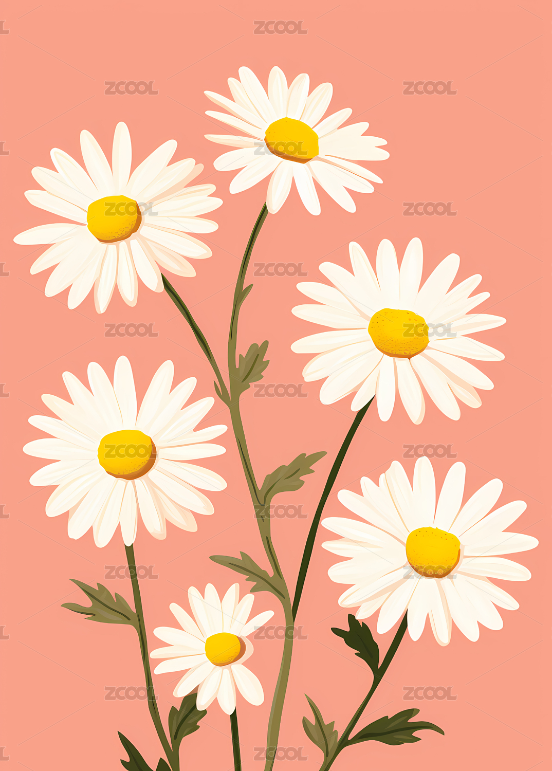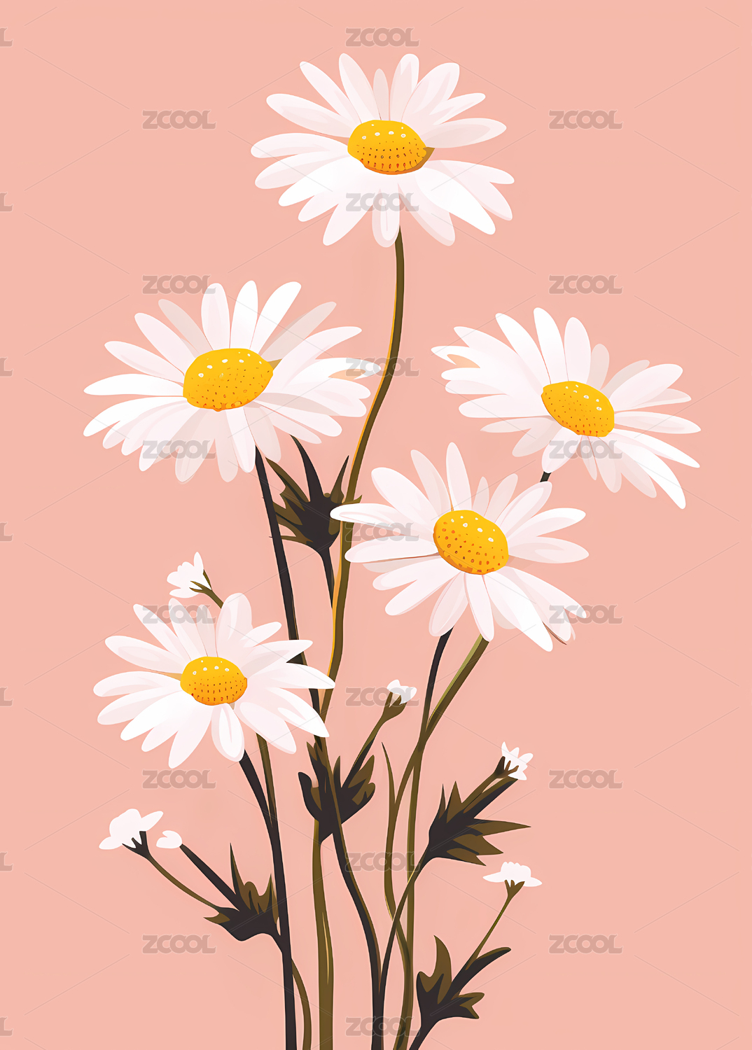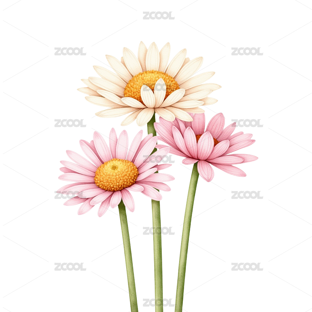 手绘水彩黄色小雏菊花卉孤立在白色背景