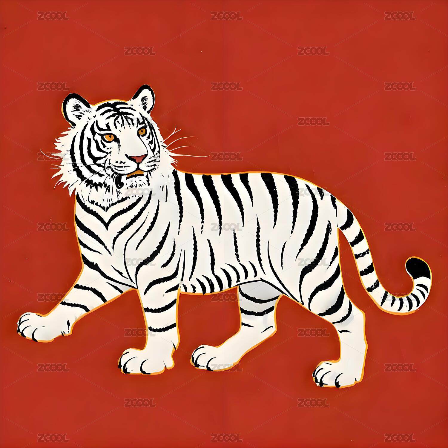红色喜庆老虎 十二生肖 套图
