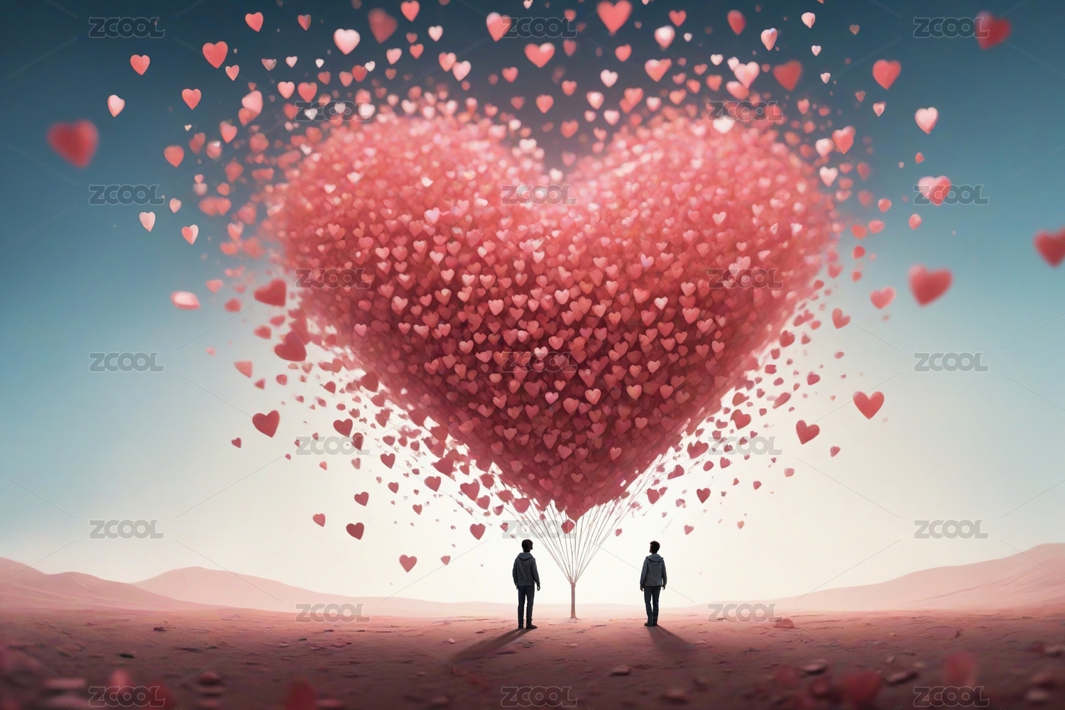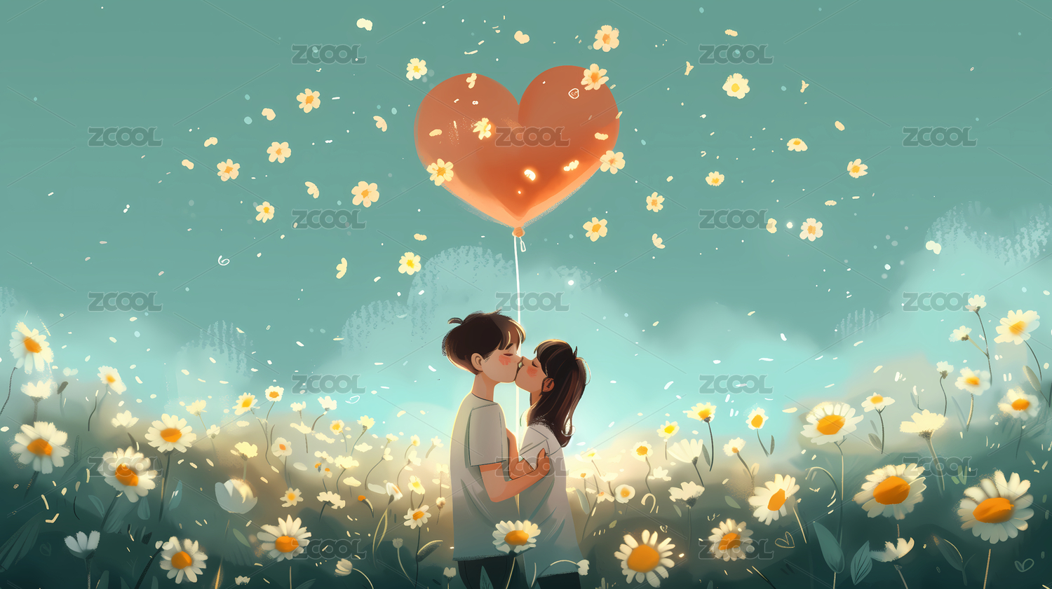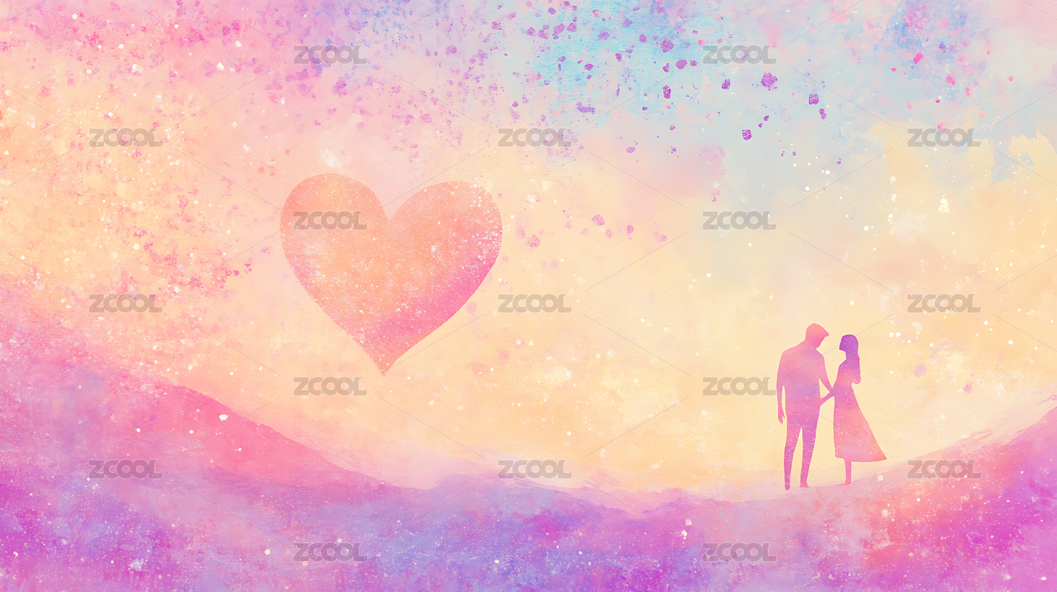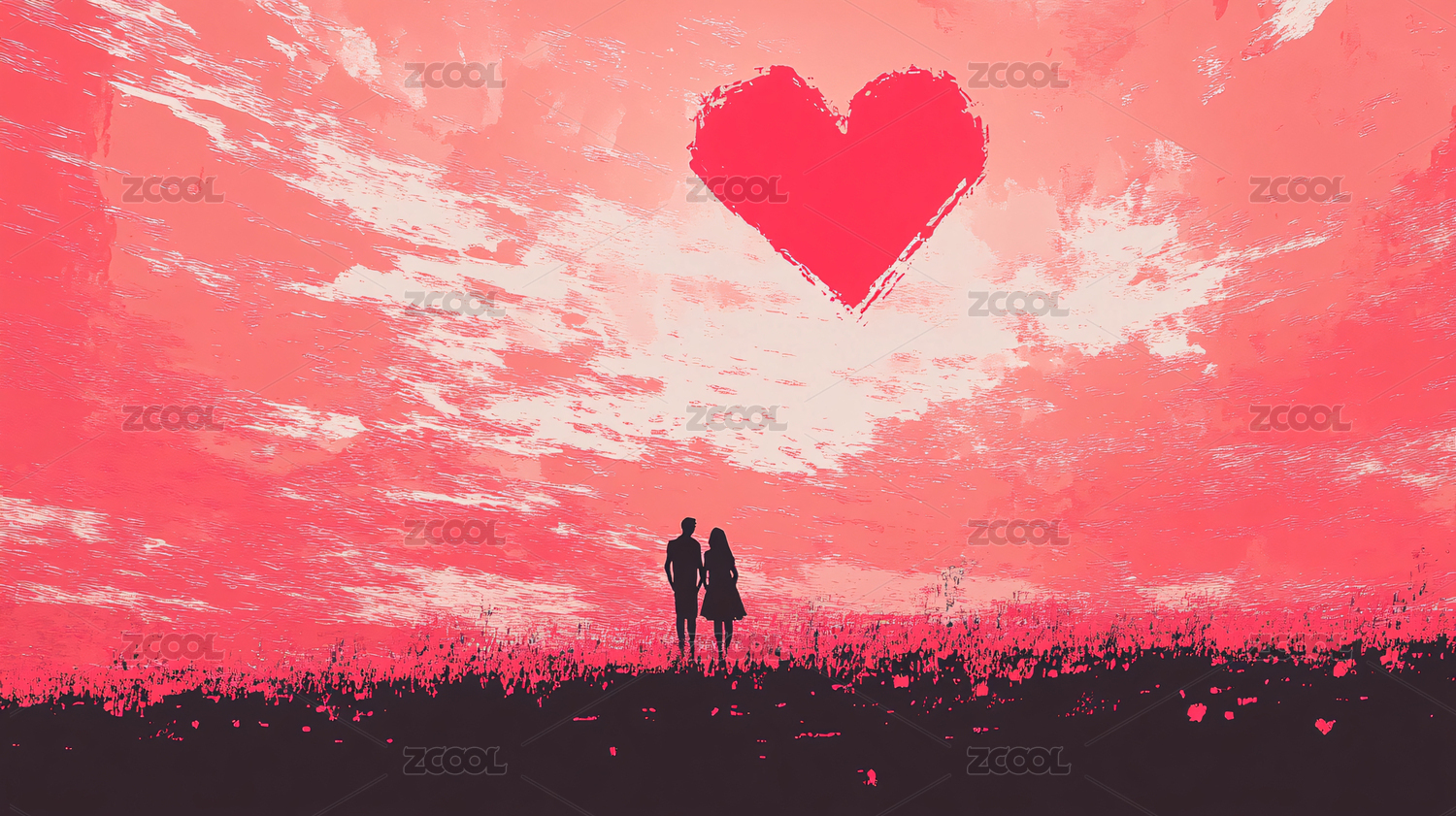 情侣,爱心,插画,浪漫,唯美,温暖,天空,氛围,云,清新