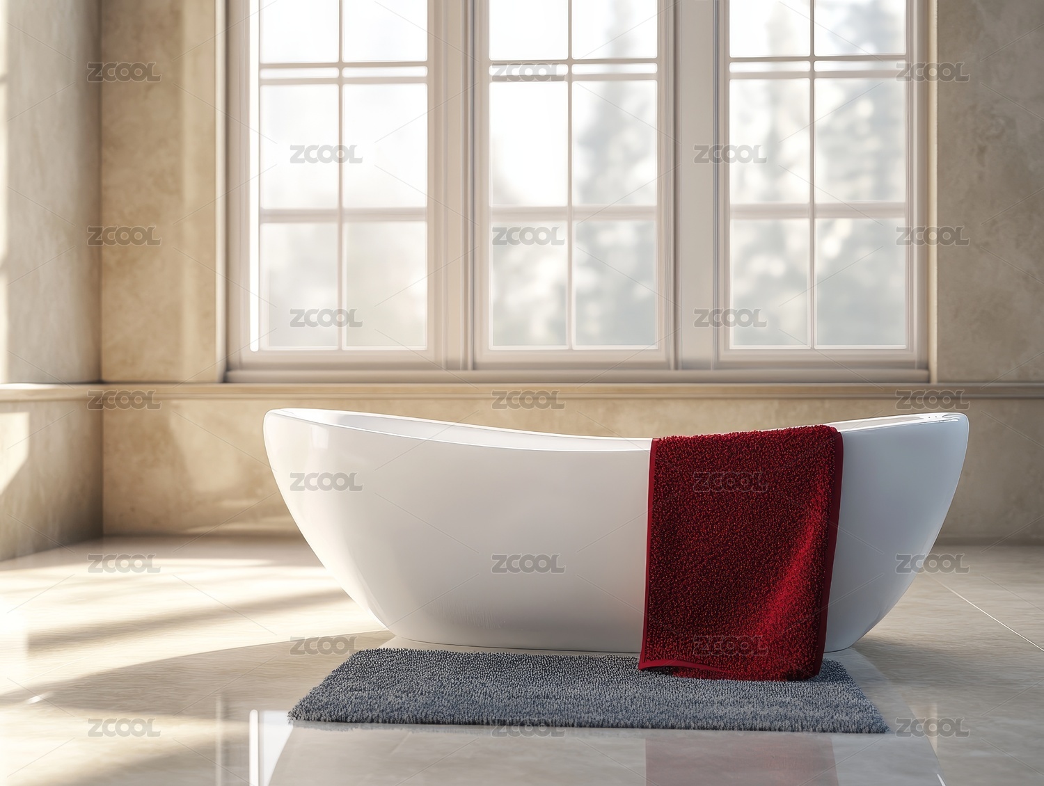 白色浴缸搭红色毛巾