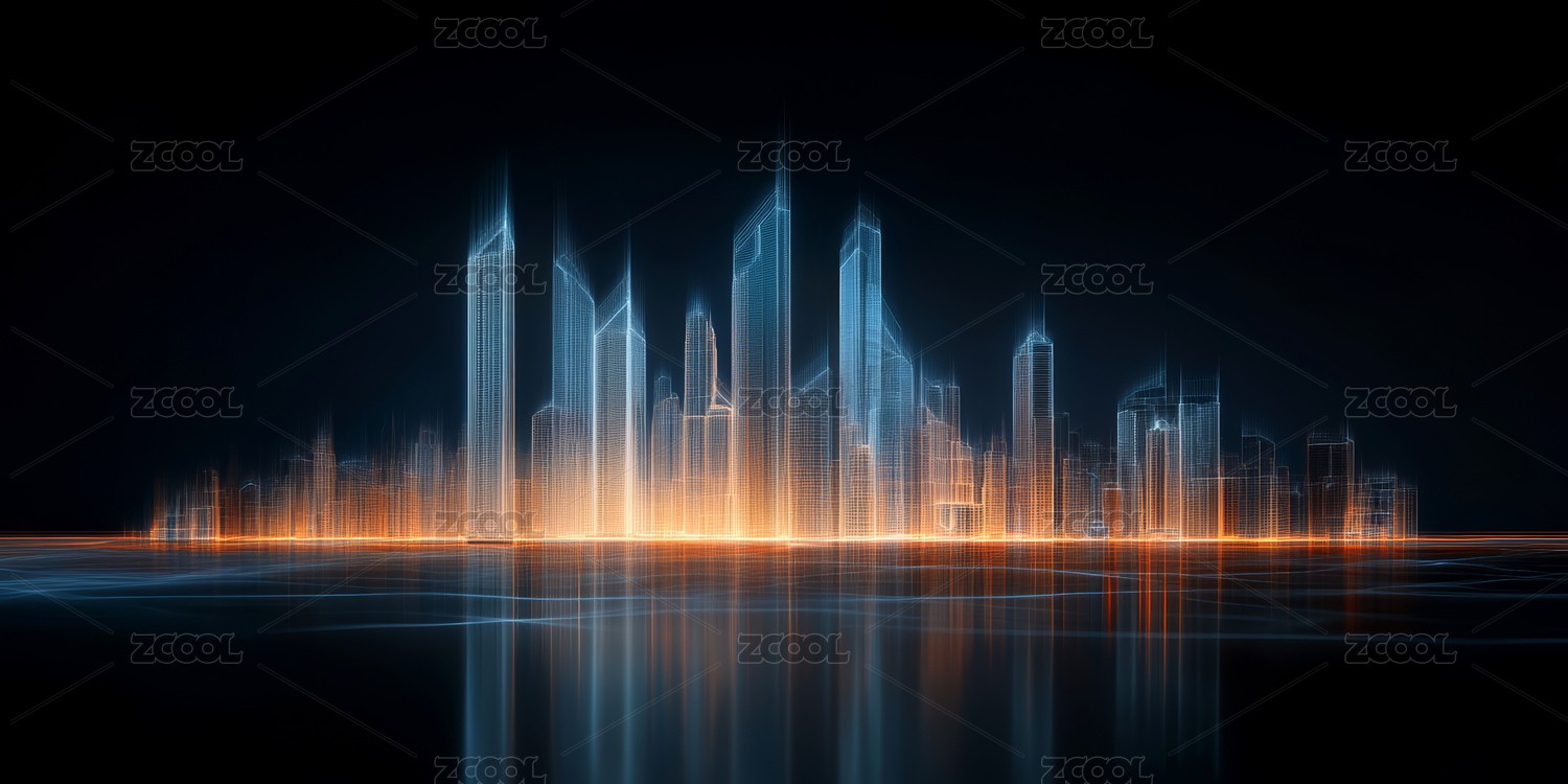由光影和线条构成的现代城市天际线景观