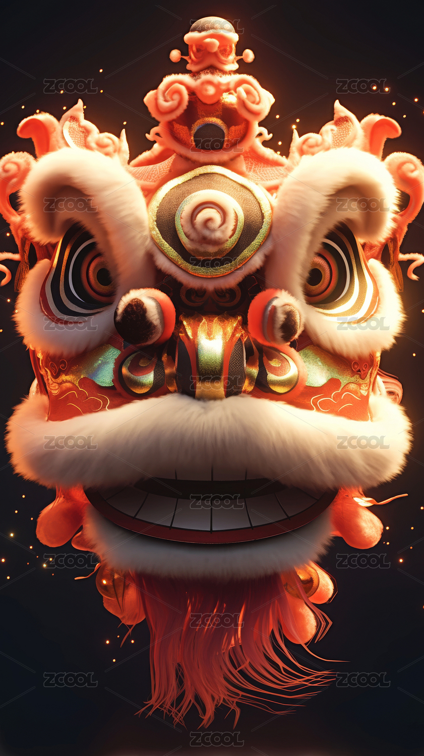 艺术,喜庆,图案,绘画,春节,纹理,舞狮,数字艺术,色彩,AI绘画